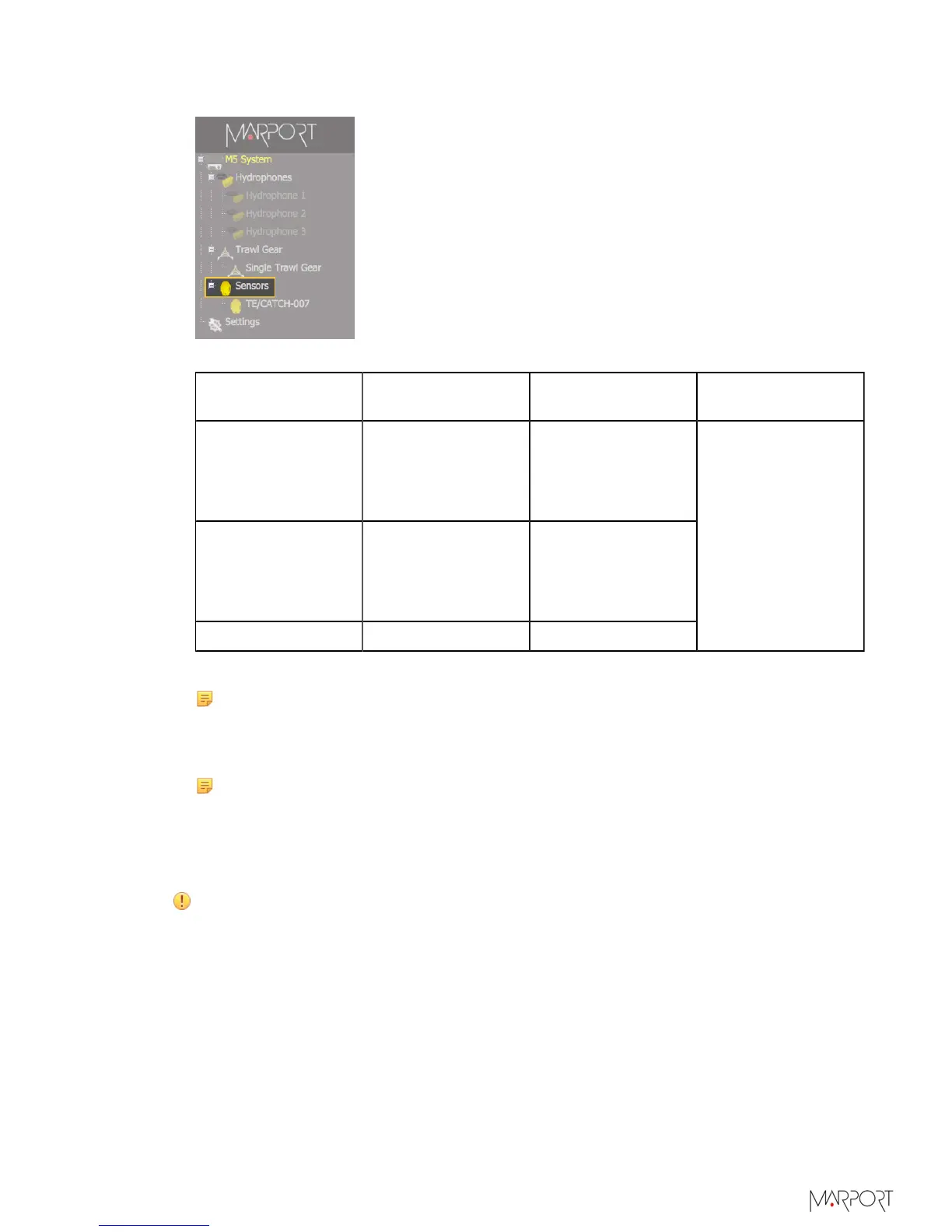 Note: Sensors with Catch hybrid PI firmware can be added to Marport, Scanmar