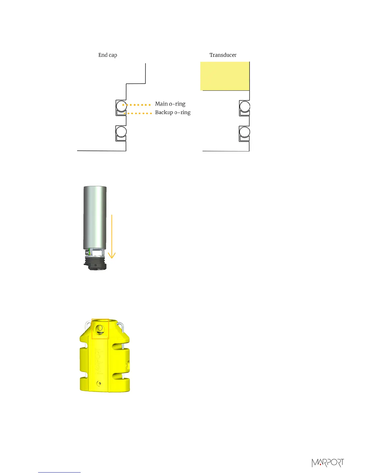 transducer as illustrated (cross-section). Inspect and fully clean the o-ring grooves.