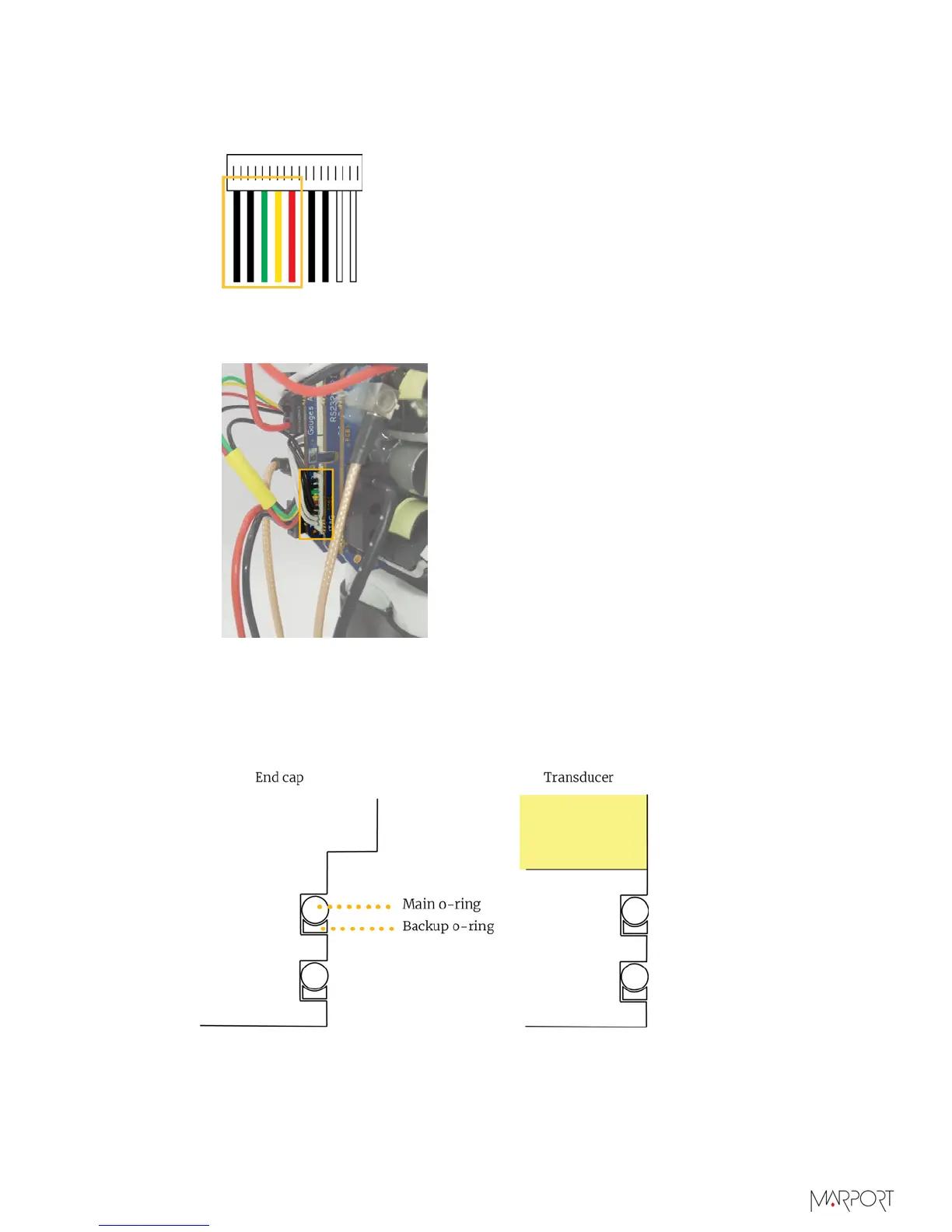 transducer as illustrated (cross-section). Inspect and fully clean the o-ring grooves.