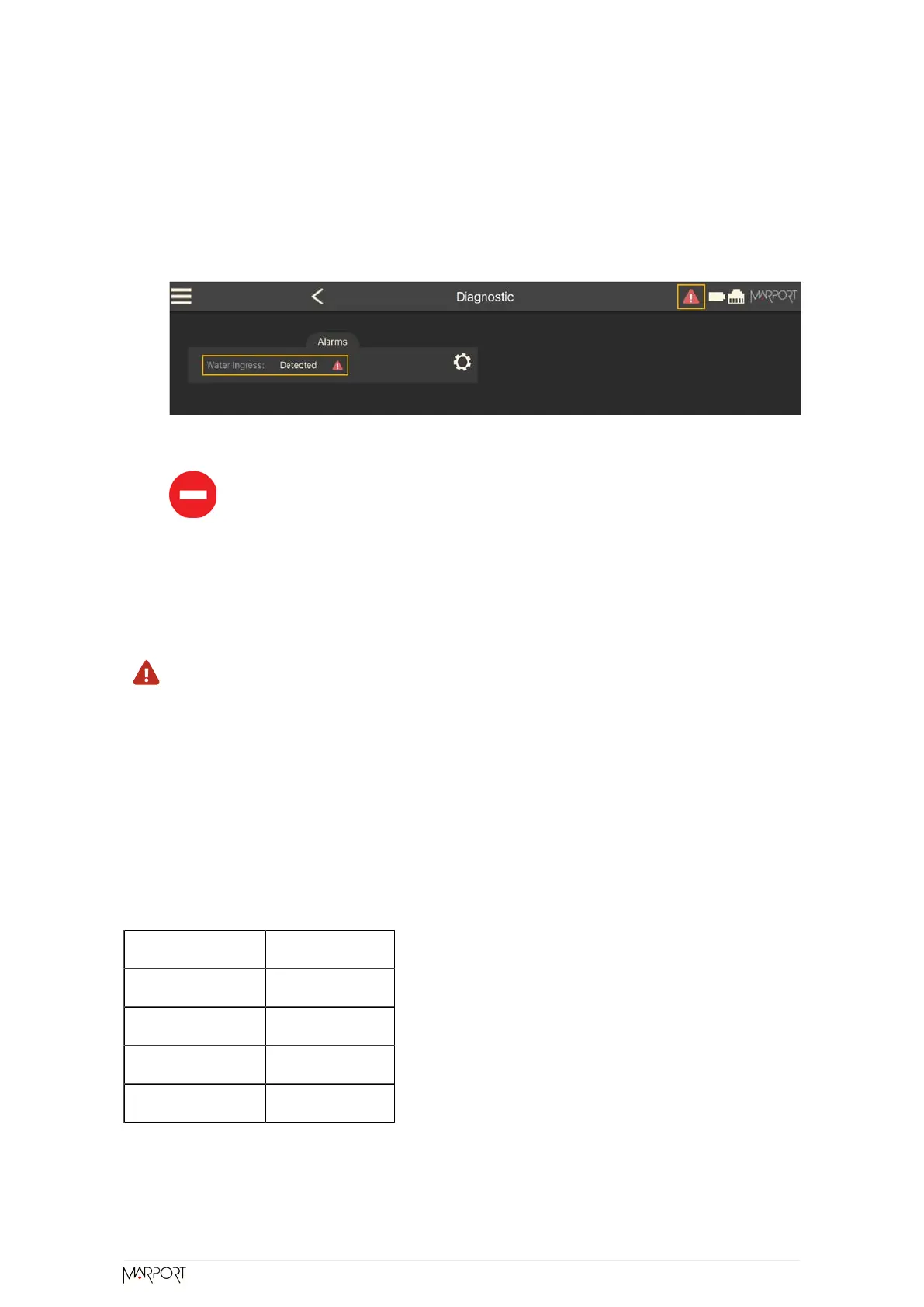 When the alarm appears, take the sensor out of water immediately and contact Marport