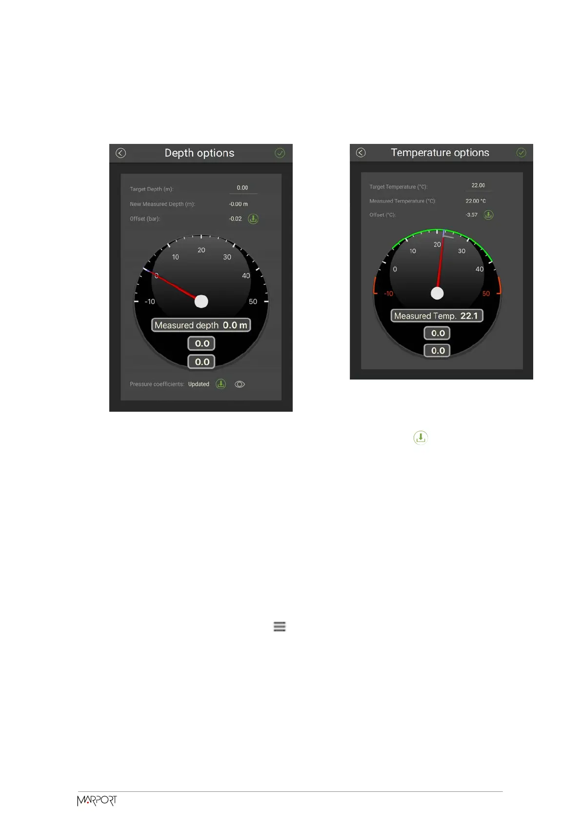You can test the measures taken by the sensor (e.g. battery level, temperature, depth)