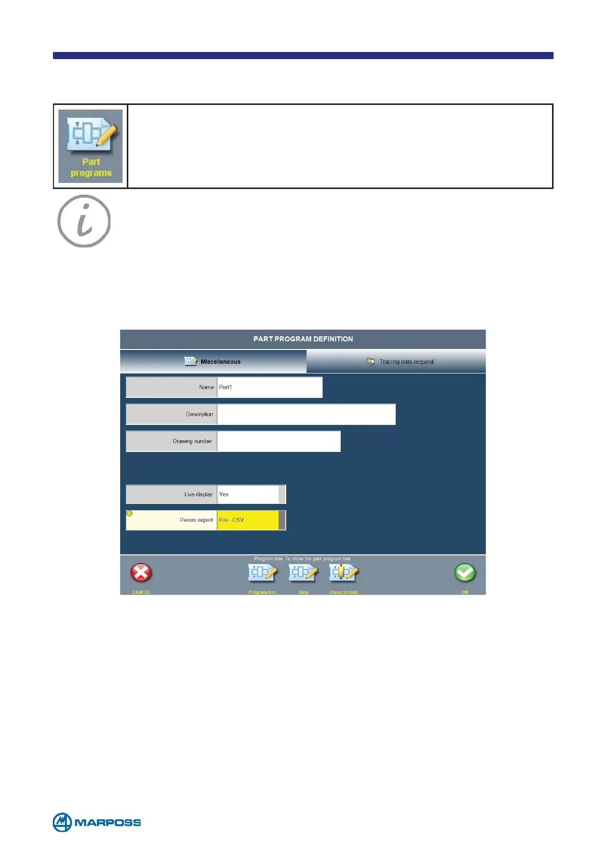 Select PART PROGRAM from the PROGRAMS MENU in order to access the