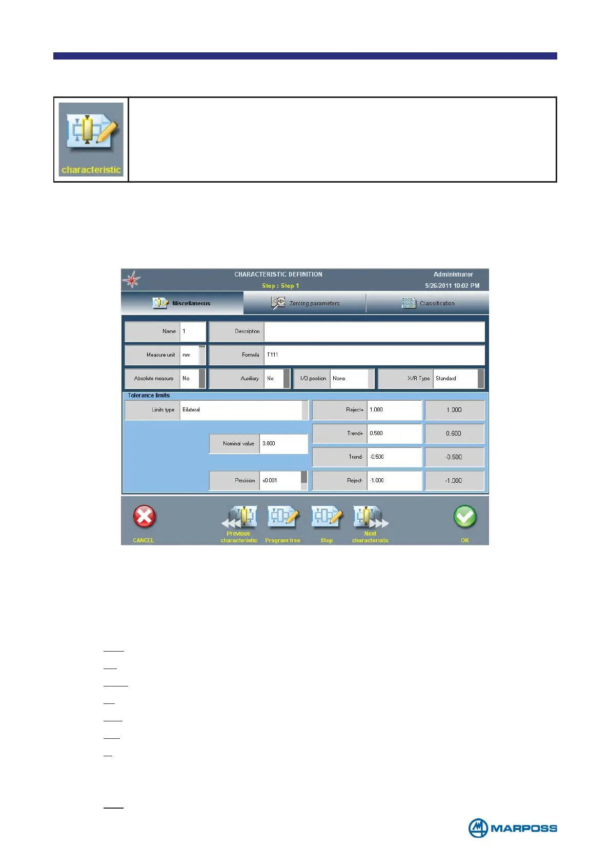 This tab is used to enter the basic CHARACTERISTIC data, i.e. name, FORMULA and tole-