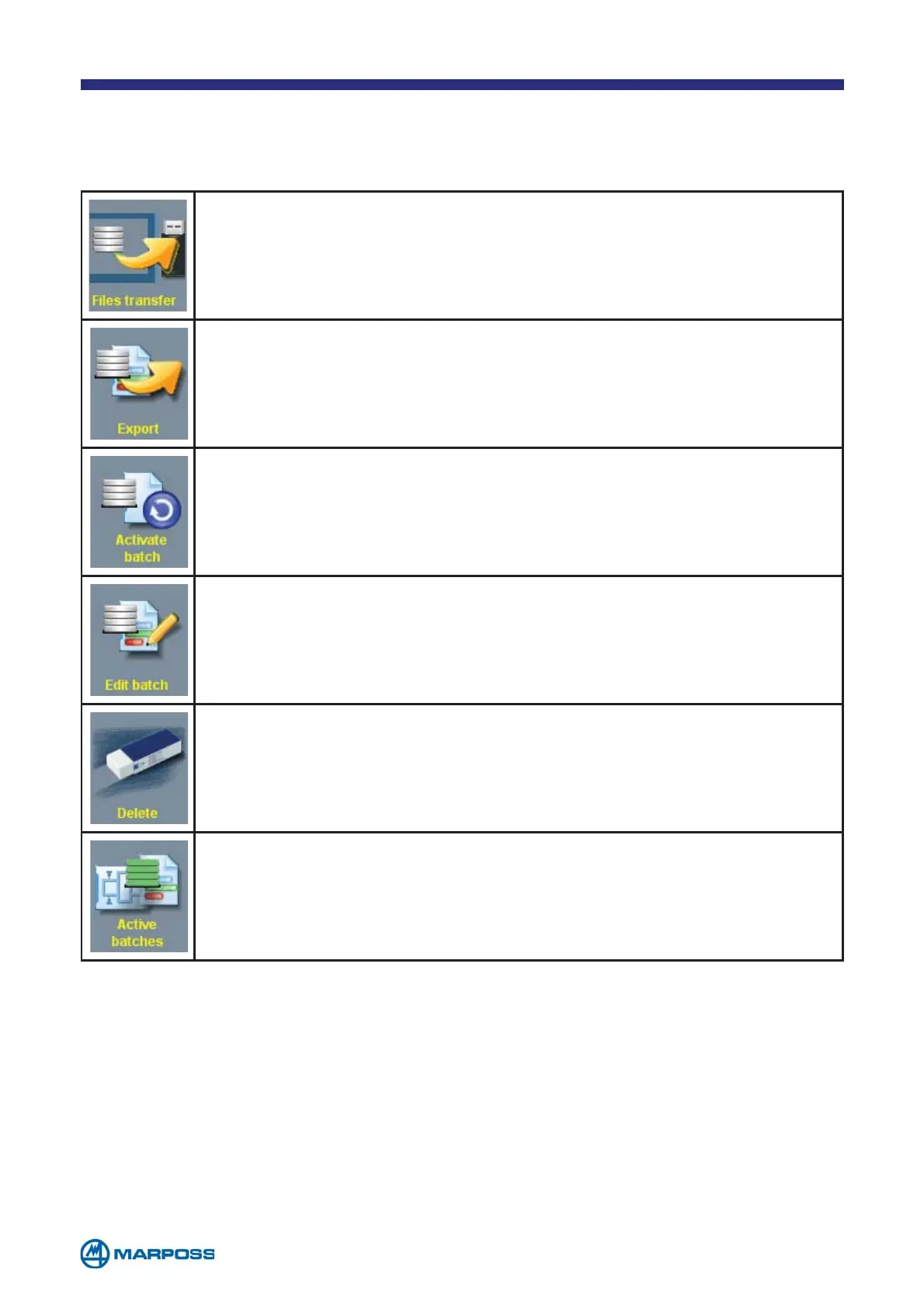 EXPORT: to export the selected BATCH to a file; the operator may de-