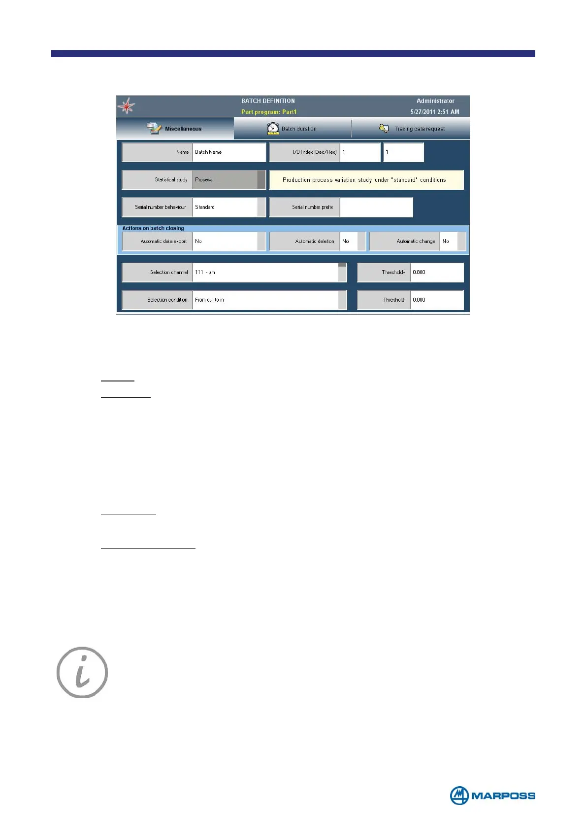 • NAME: field to define a production BATCH name.
