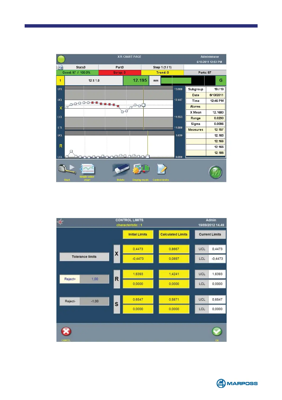 limits, etc.), the calculated limits (the software updates these limits at regular intervals,