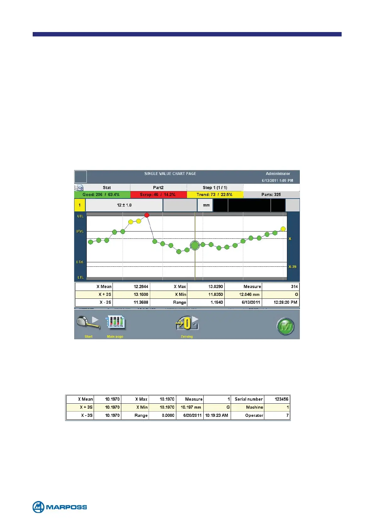 The SINGLE VALUE CHART PAGE displays information for each single acquisition. This can