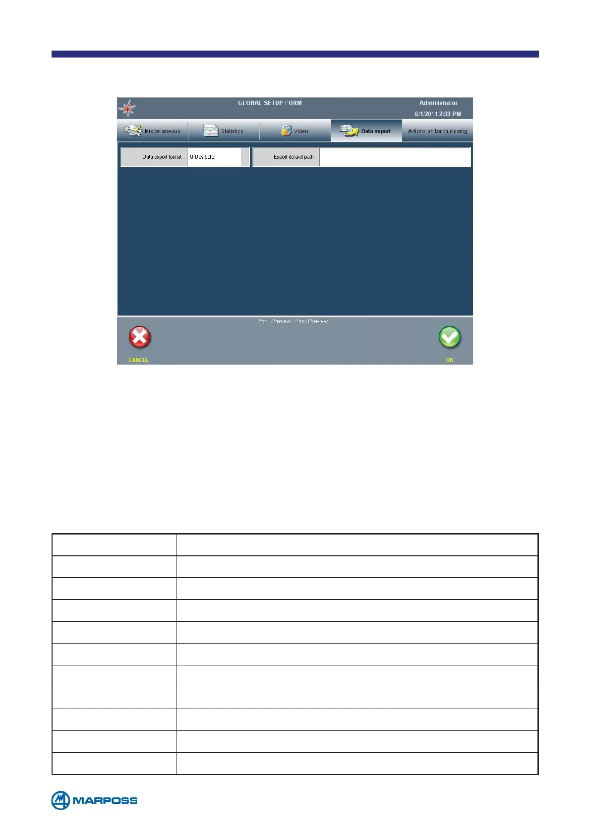 • DATA EXPORT FORMAT: Q-Das (File .DFQ)/ Text (File .CSV)/ SESAME (.txt). The