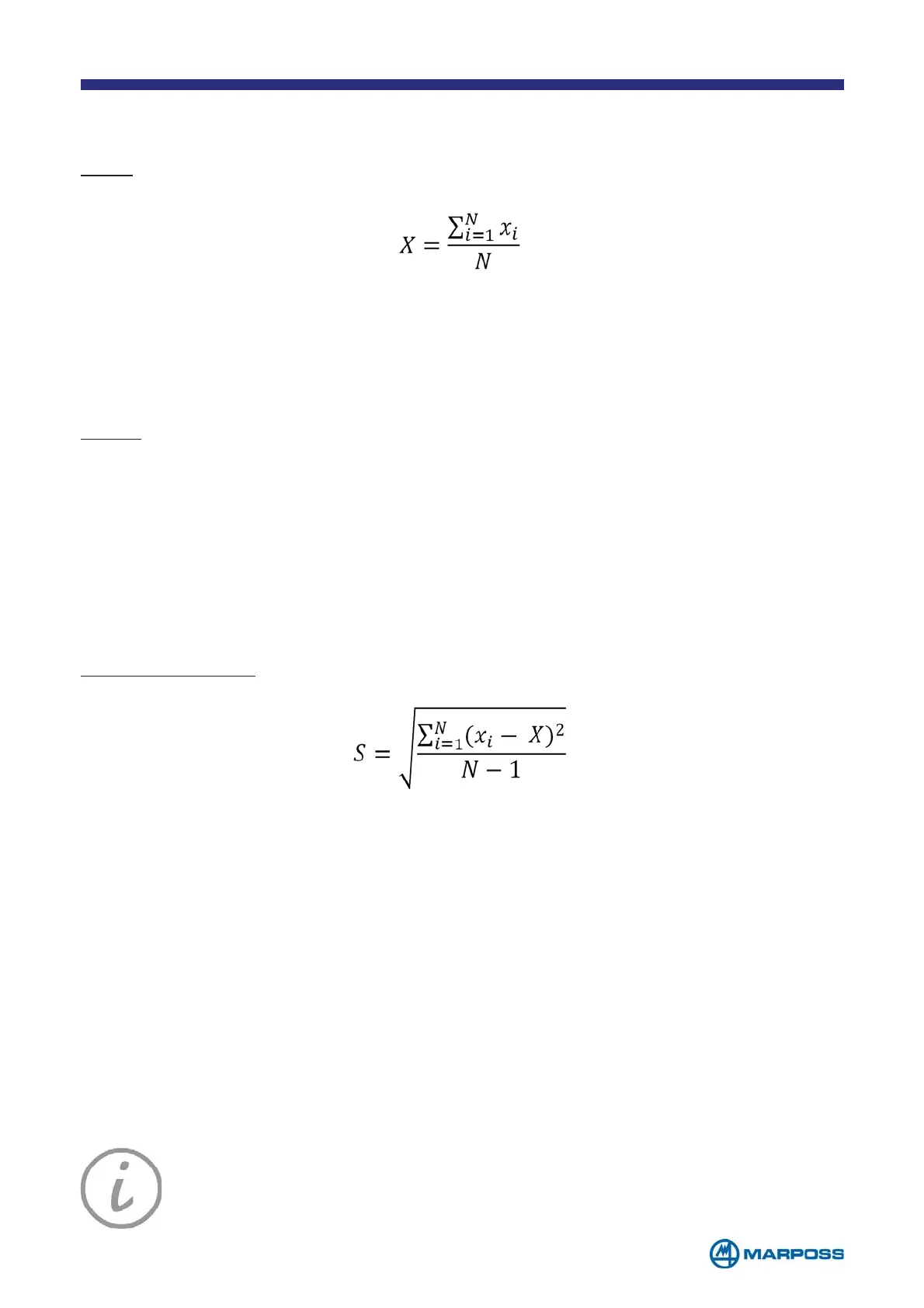 Standard deviation - Indicates the dispersion of the measurements. Given a set of