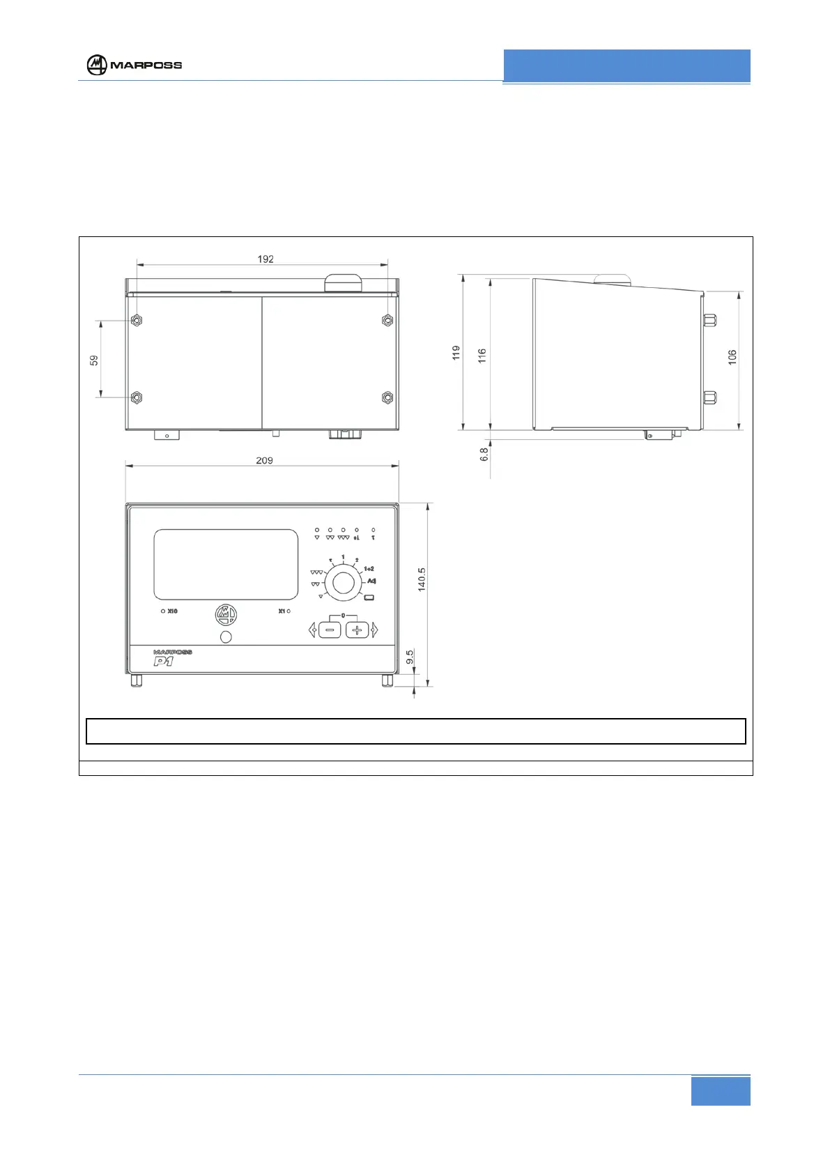 The maximum rear dimensions, due to the measuring head connector, depend on the type of measuring head used.