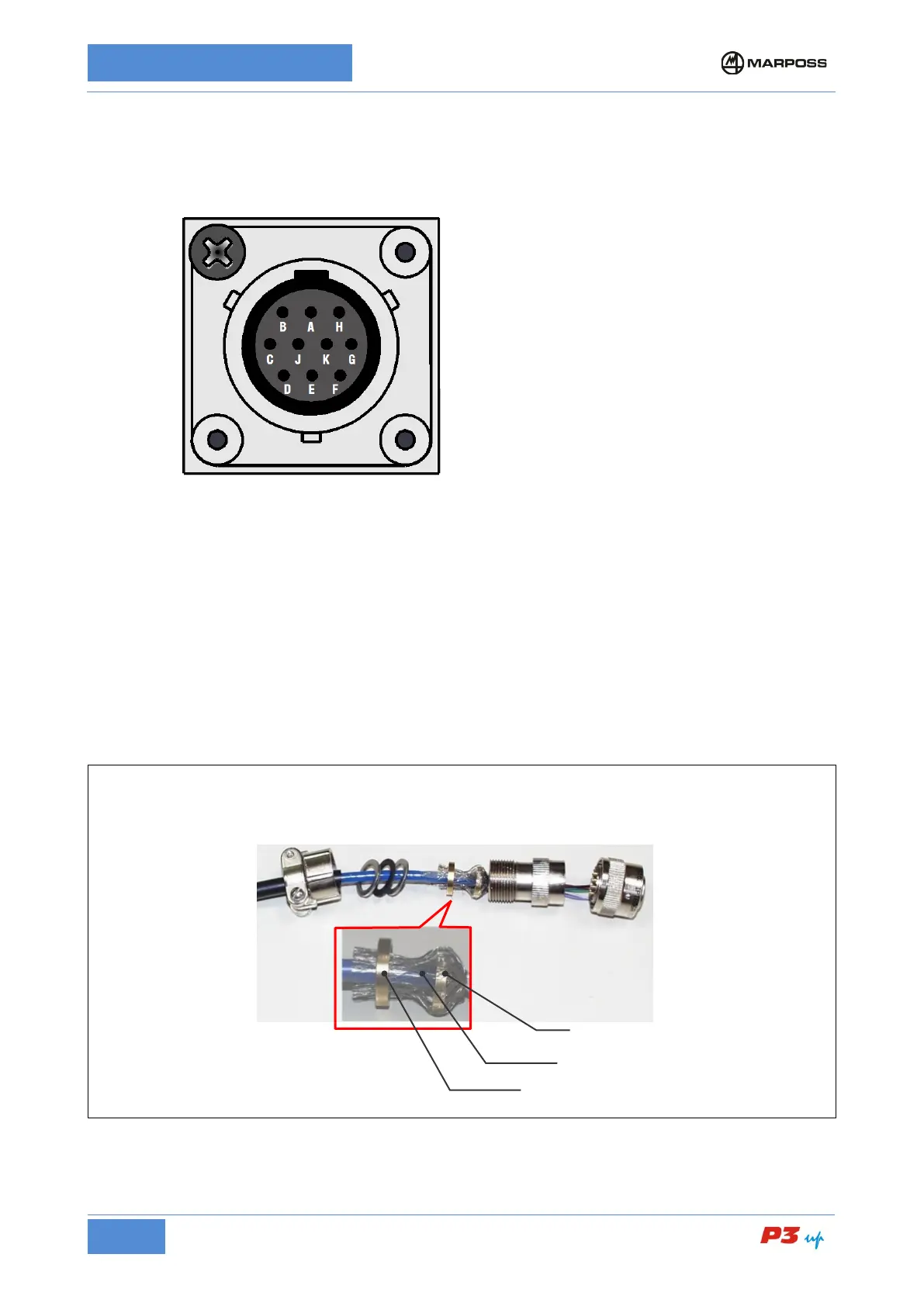 Use a globally shielded (max 10 m) cable with the braid connected to the case of the connector (P3UP
