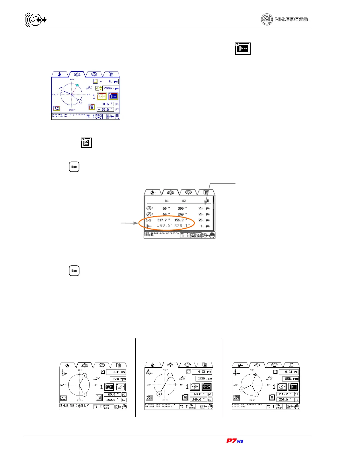 Press F2 to view page that lists the different steps of the manual balancing