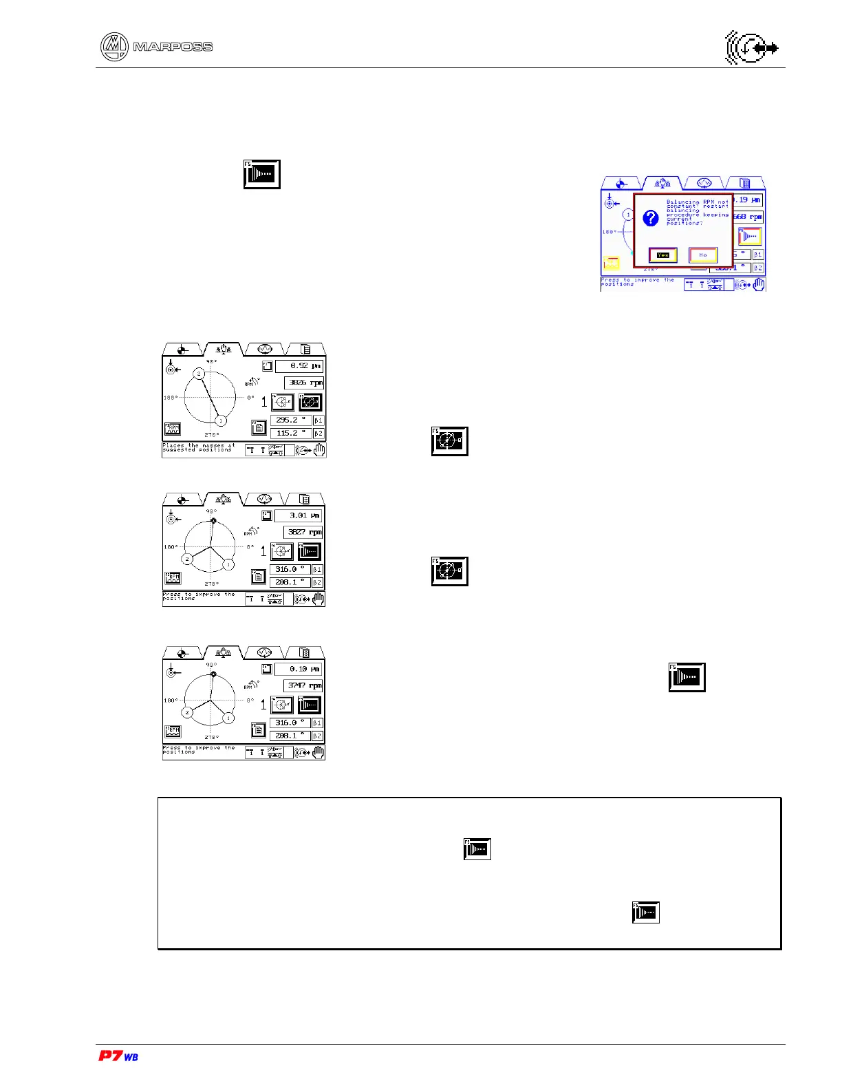 Note: The procedure of manual balancing with weights can be interrupted (exit