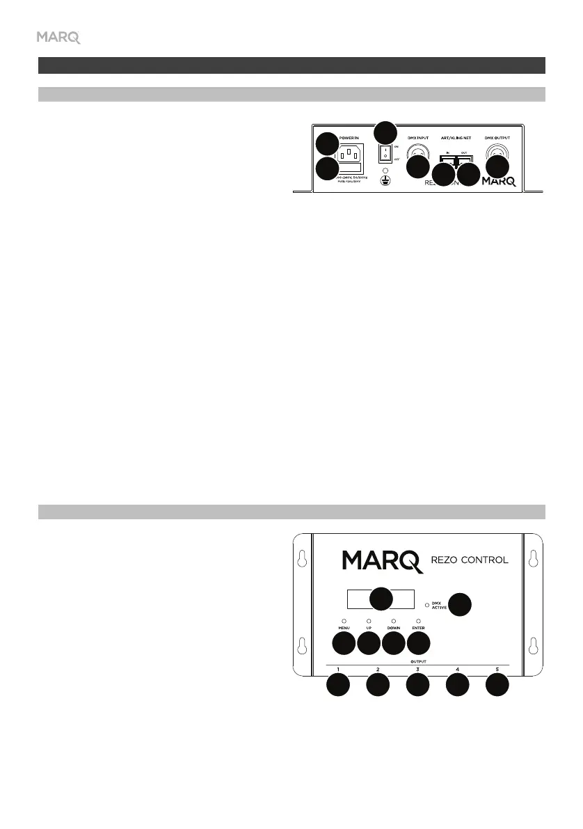 13. DMX: This light will illuminate when RezoTube Pack is receiving DMX data properly through its