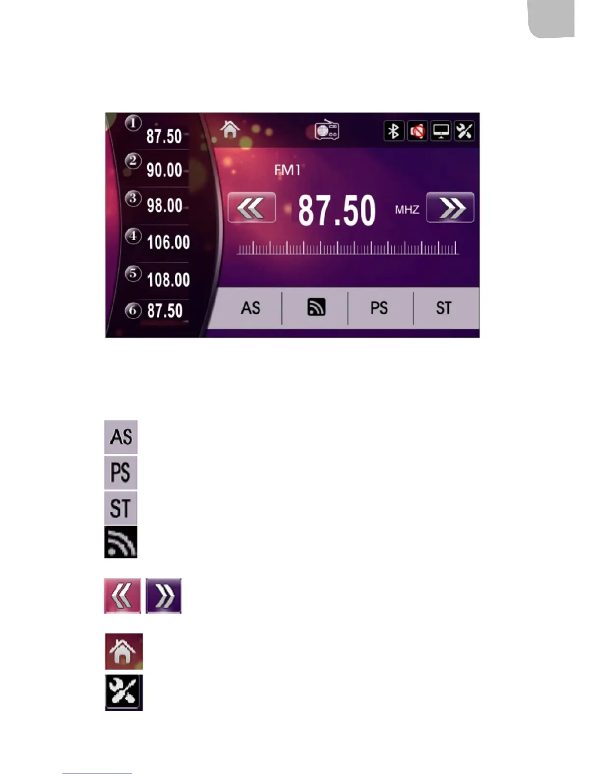 Searches automatically for stations and saves them. Press the icon to start channel