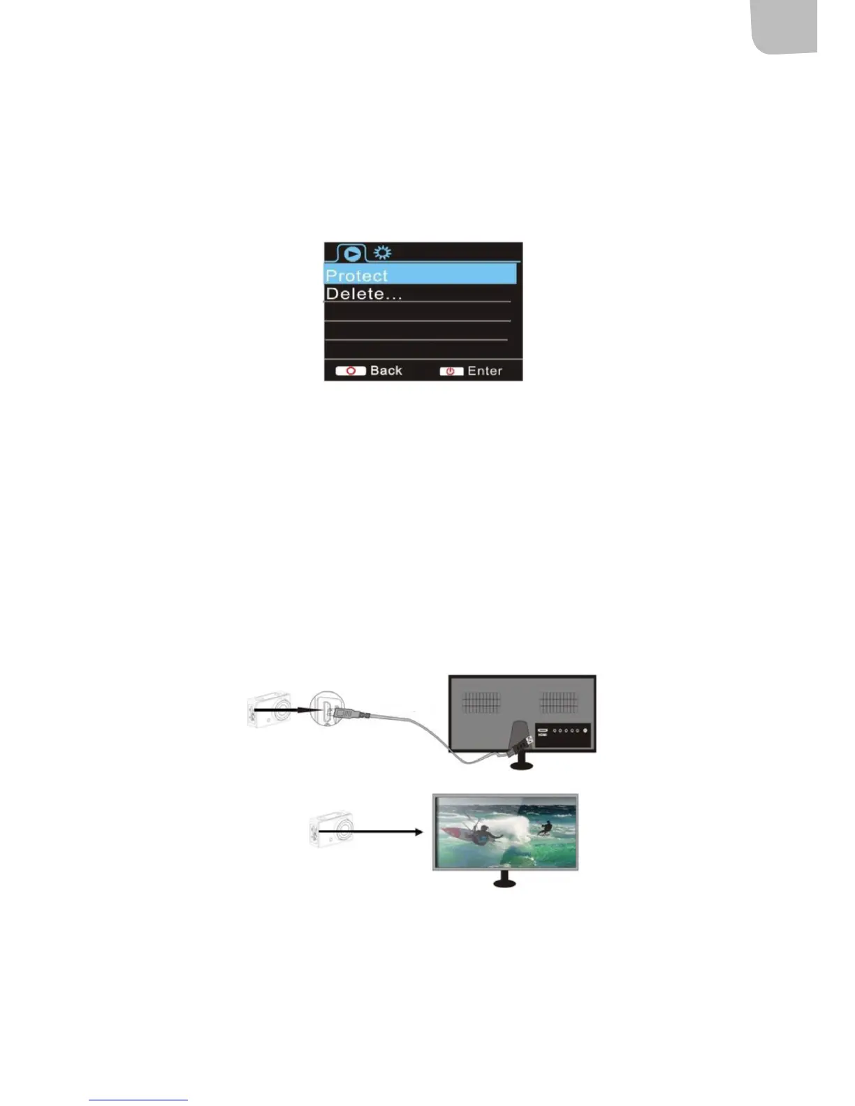 1. Anslut kameran till HDTV med en HDMI-kabel (säljs separat).