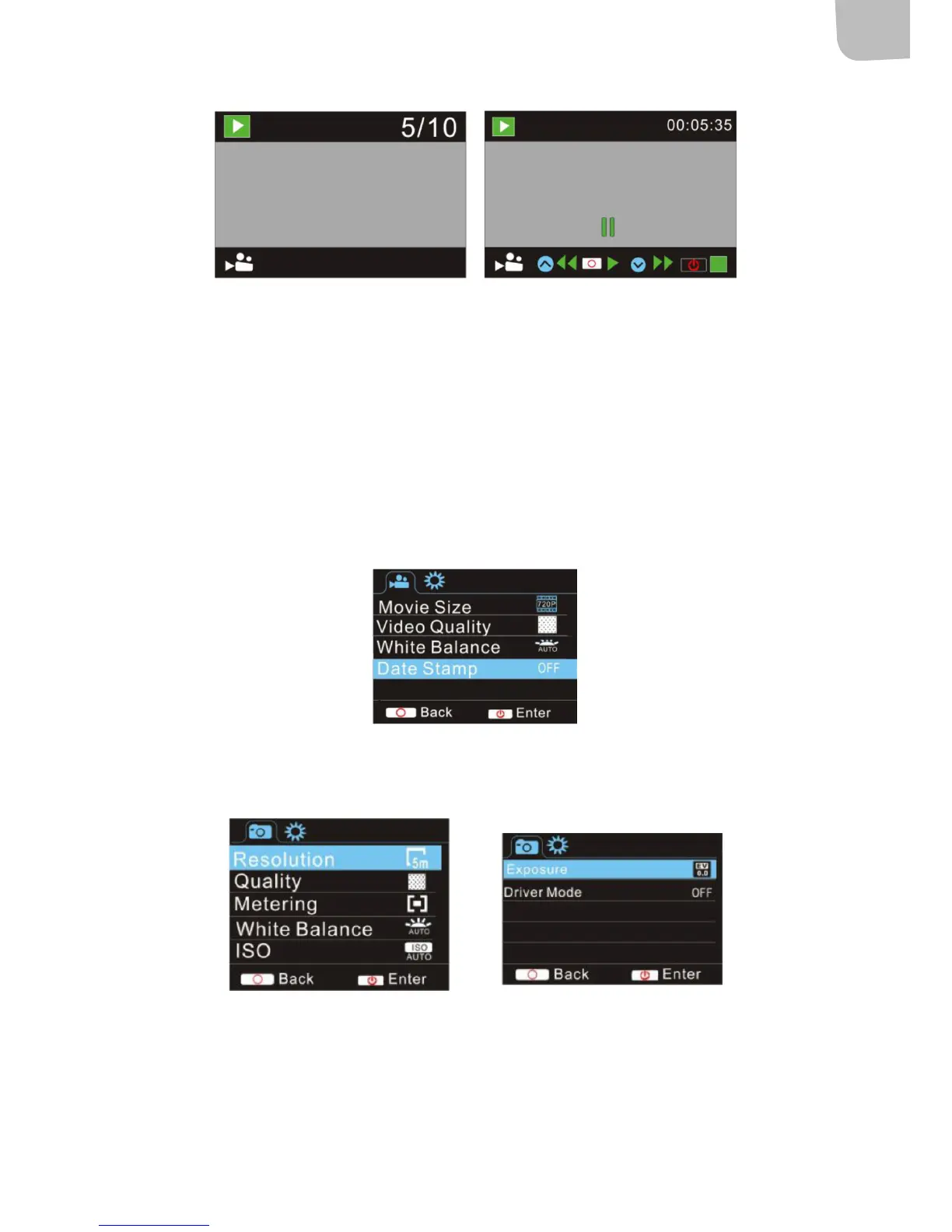 Menu trybu nagrywania/monitorowania ruchu drogowego