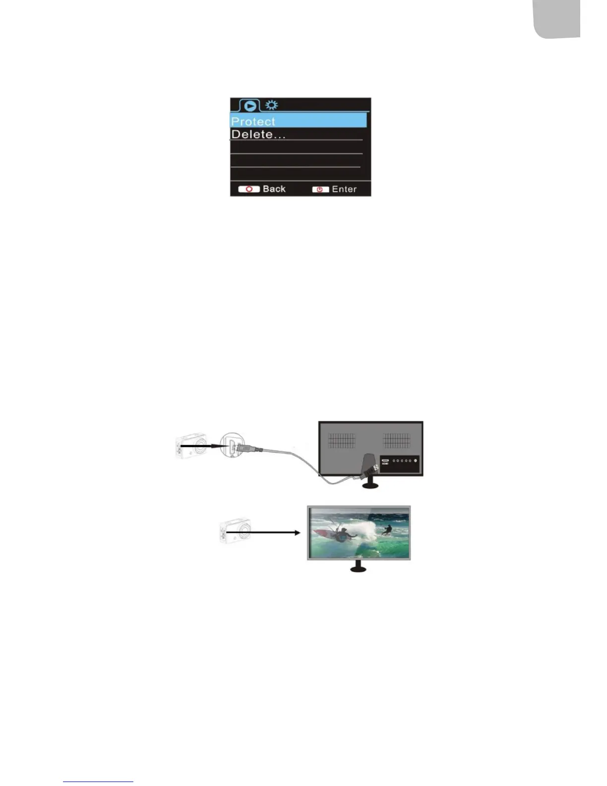 HDMI do kamery, ajego drugi koniec do gniazda HD wtelewizorze HDTV według rysunku poniżej.