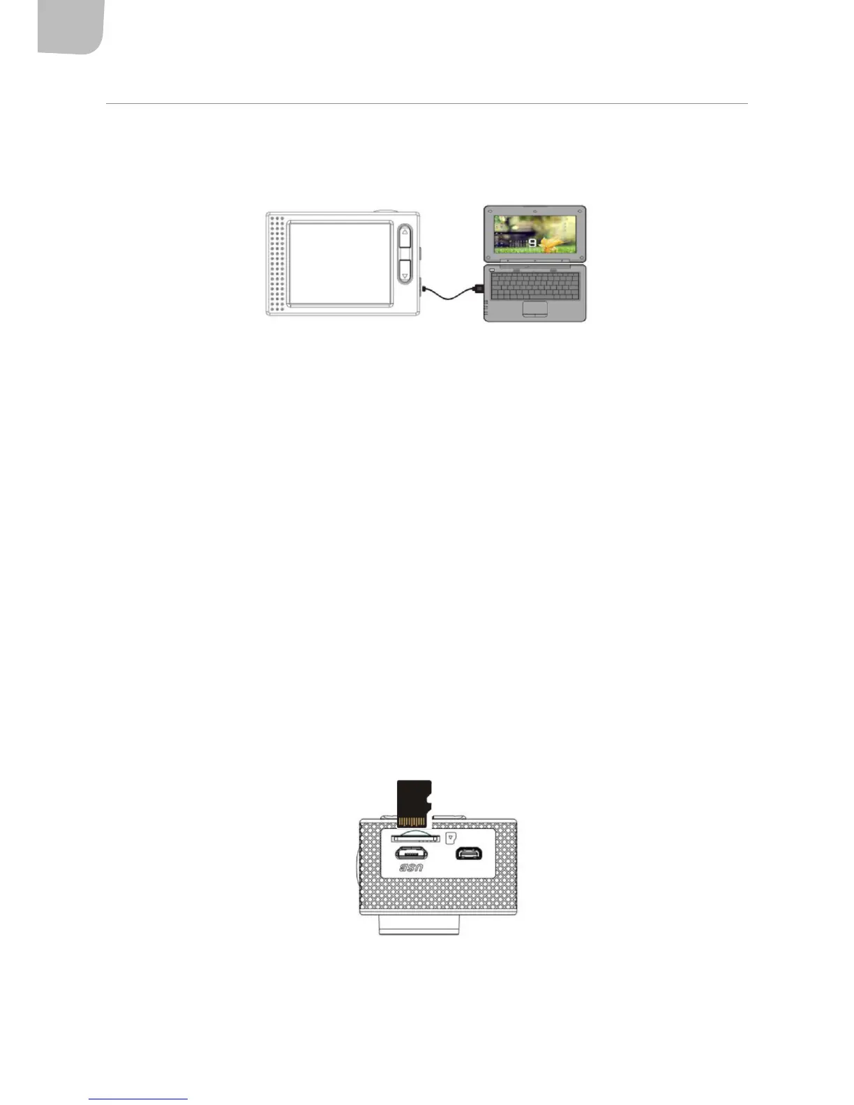 1. Anslut den avstängda kameran till datorn (eller en USB-laddare) för att ladda batteriet.