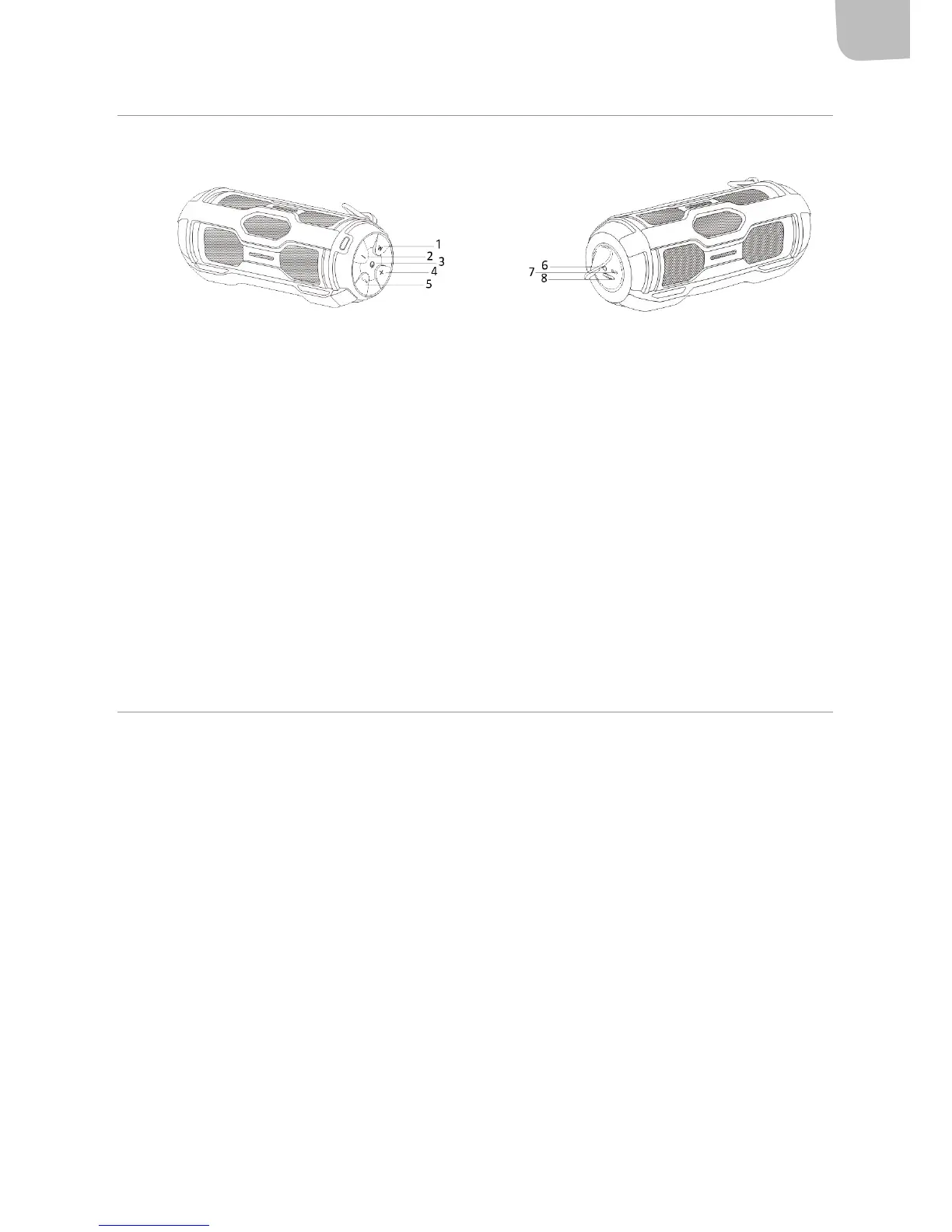 7. AUX-ingång (3,5 mm audiokontakt): Anslut audiokabeln till ljudkällan och till högtalarens