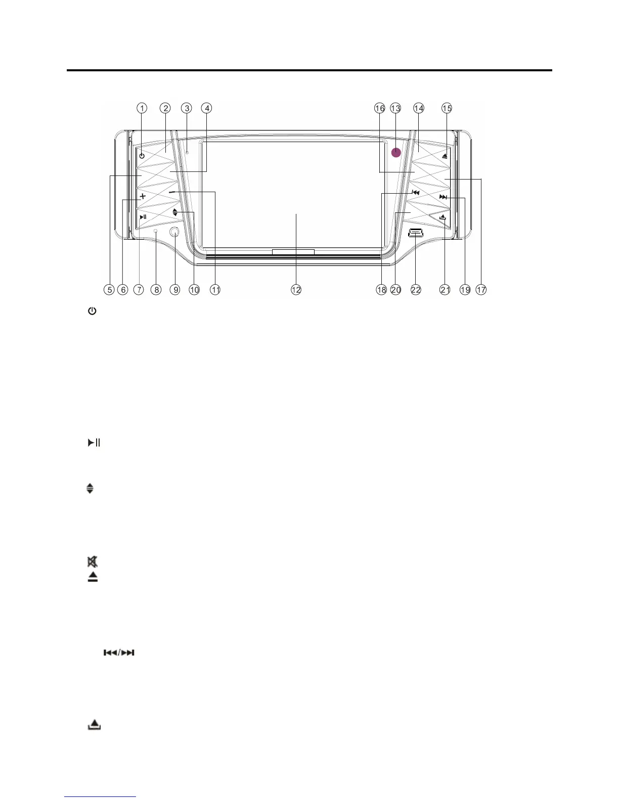 18&19. : Recherche les stations radio, sélectionne la piste vers l’arrière/avant. Veuillez lire le contenu