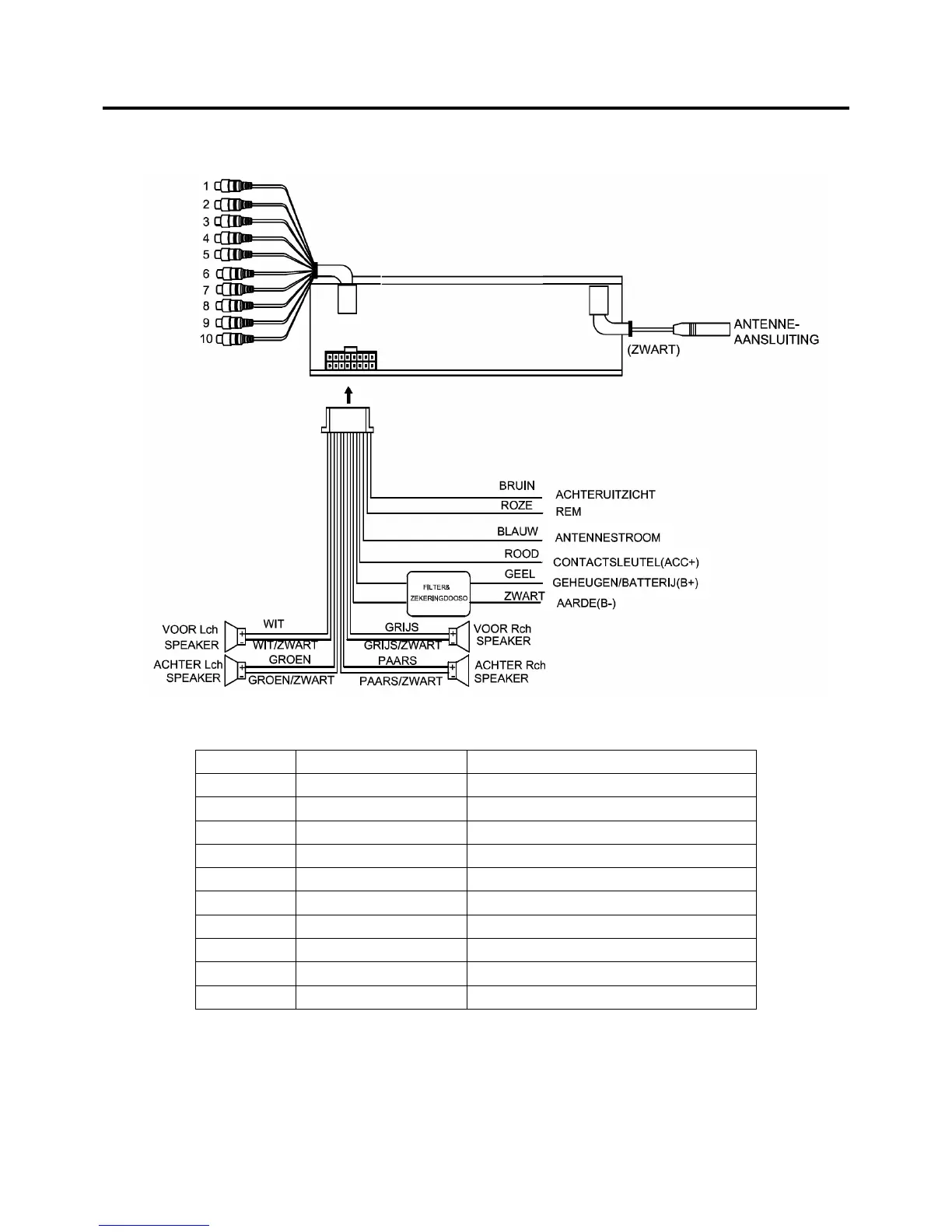 Lijn No. Lijnkleur Functie (terminal kleur)