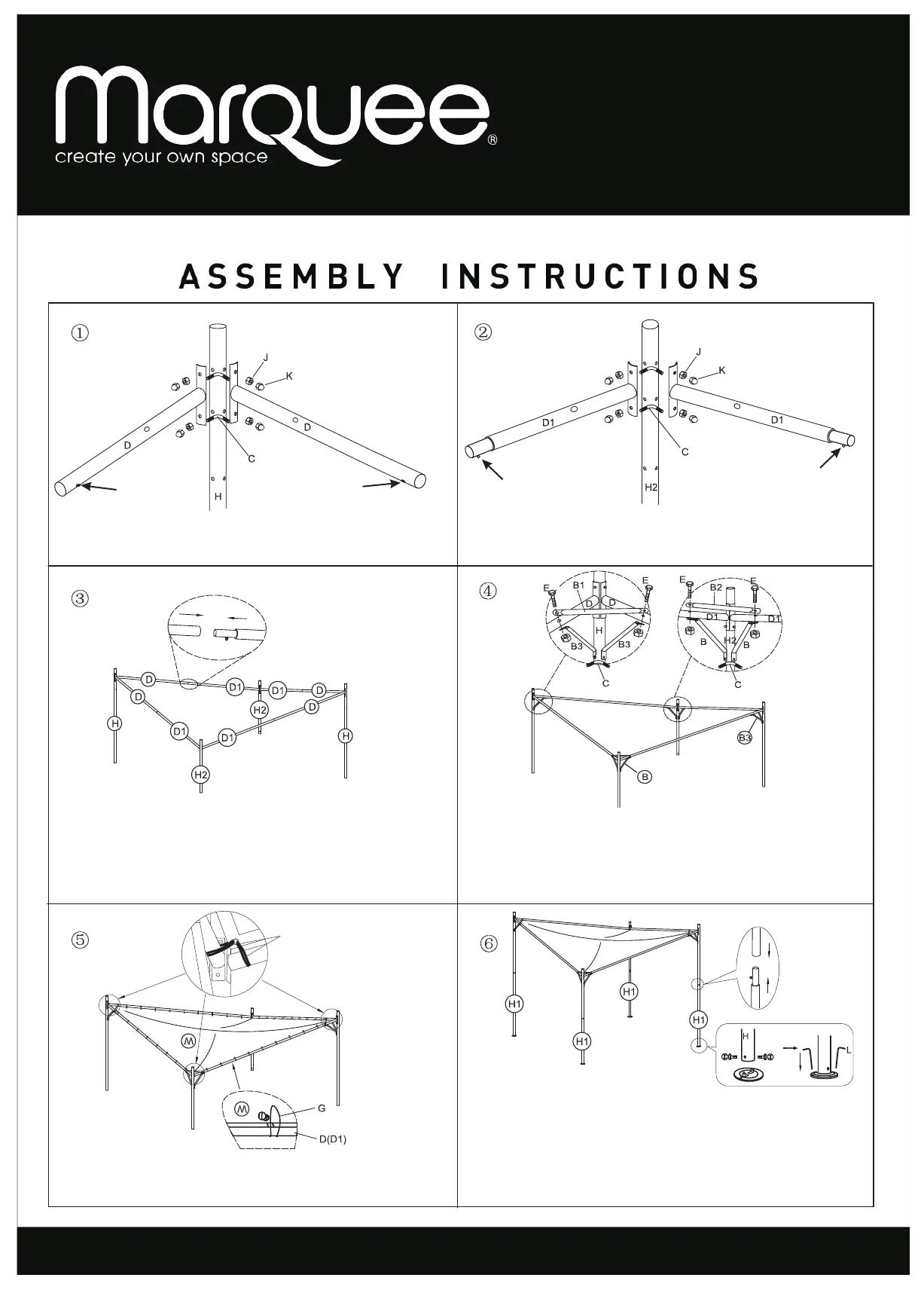 4.1. Locate brackets B1 & B3 and secure them to pole (H) and