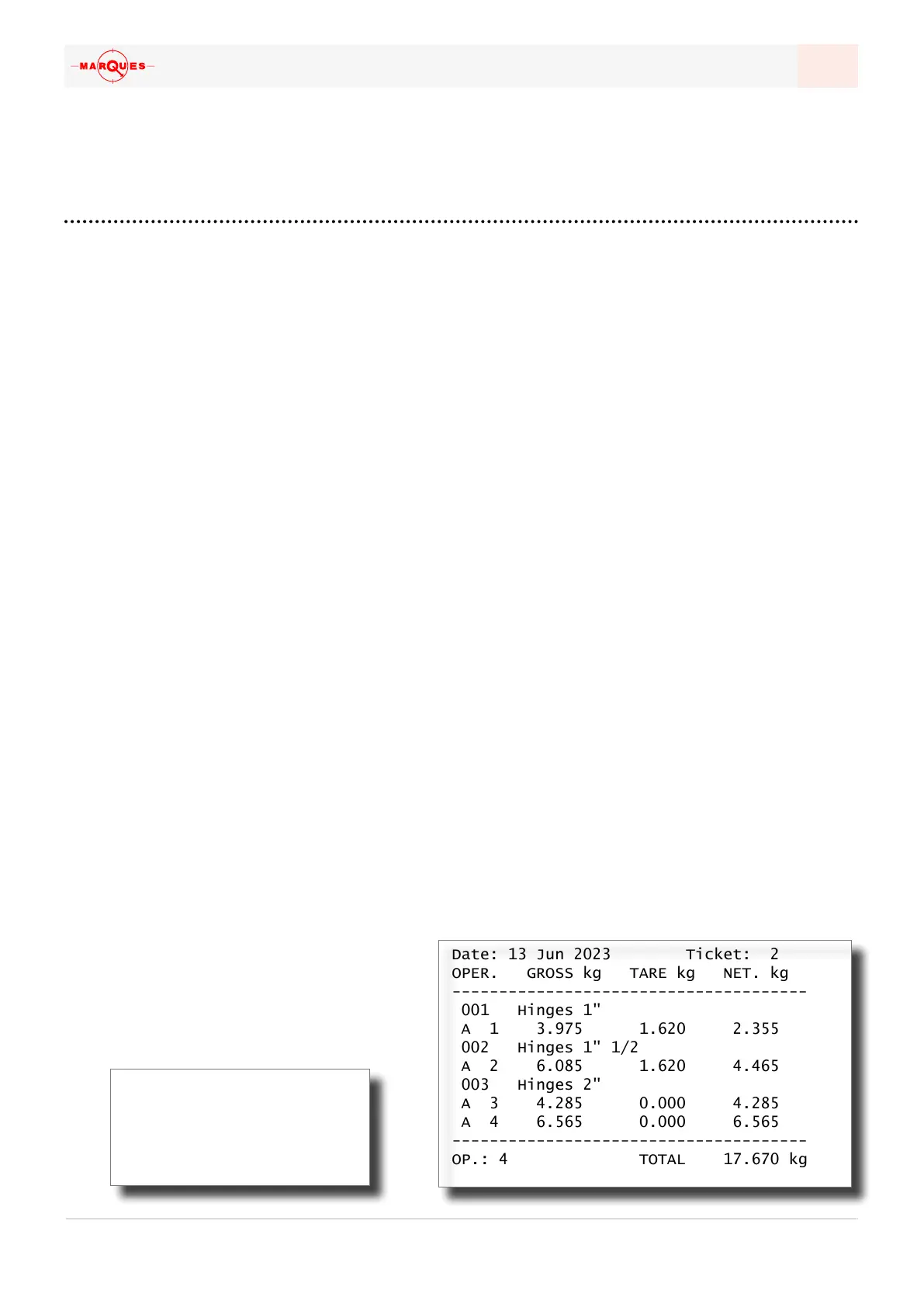 ble, and add it to the list of weighings to be printed in the ticket. The end of a