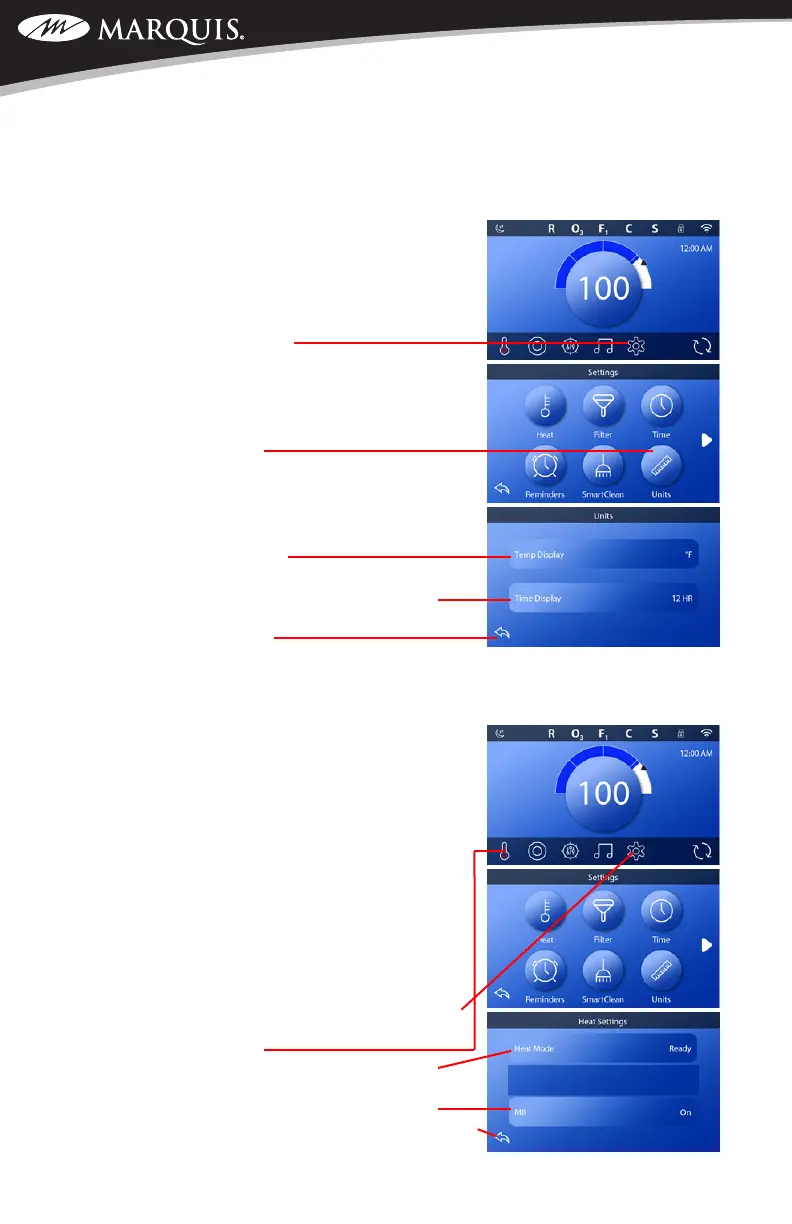 Features found in the Units screen allow for changing how the temperature scale and time are