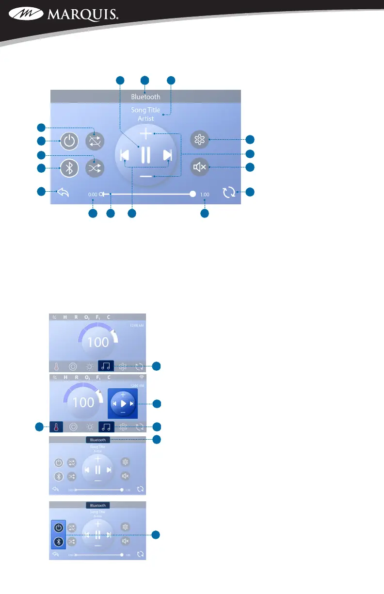 M- Input Modes: Bluetooth, Line In N- Shufe Control