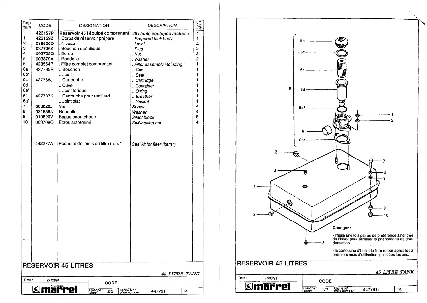 Réservoir 45 I équlp8 comprenani