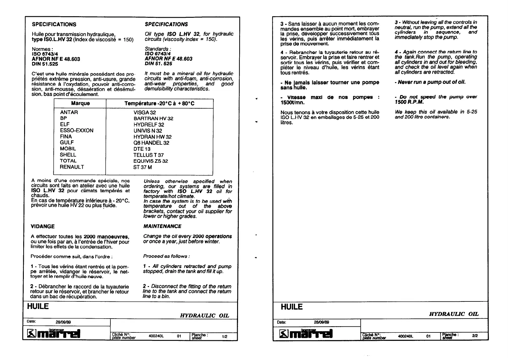 prévoir une huile HV 22 ou plus fluide.