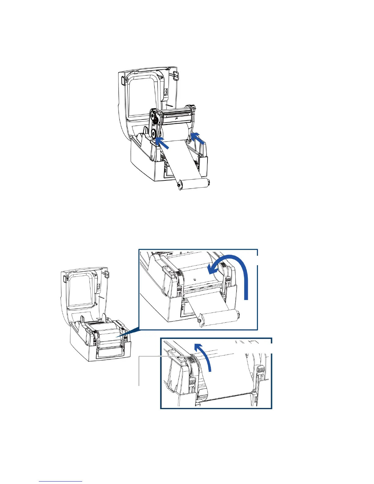 Pass the ribbon supply hub under the print head.