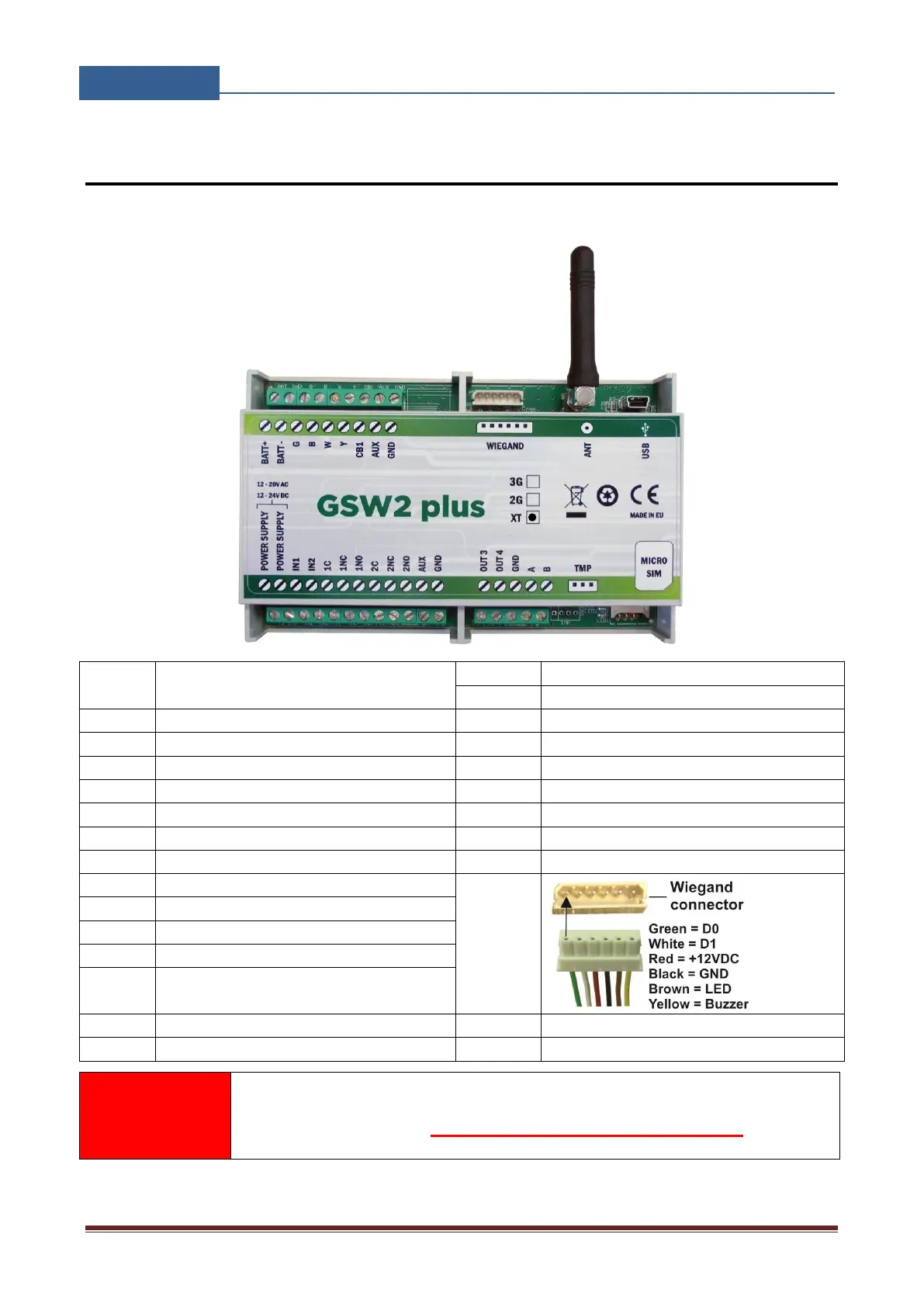 Before connection the GSW2 PLUS device please take a look at connection diagram.