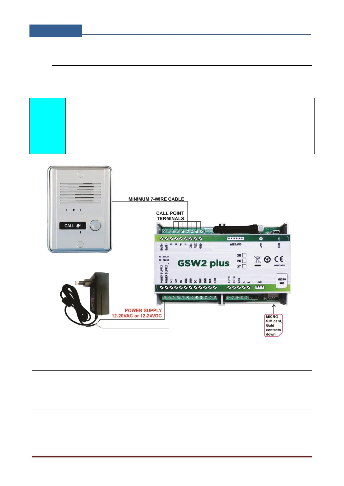 - To use IN1 (CB1) as a call button 1 send SMS to GSW2 PLUS: ;+WMOD=1;