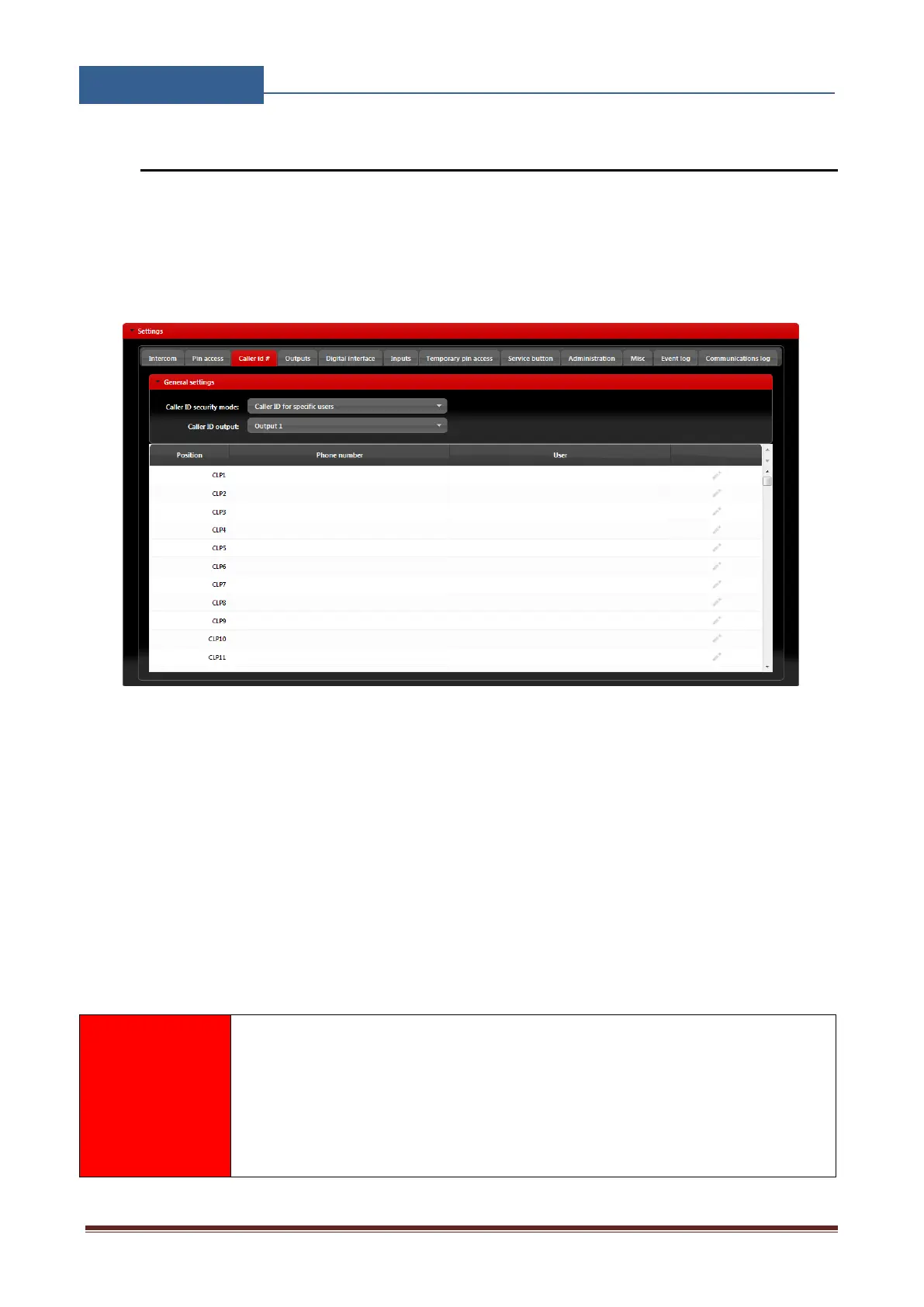 Caller ID output: Selecting the output that will be triggered in Caller ID function.