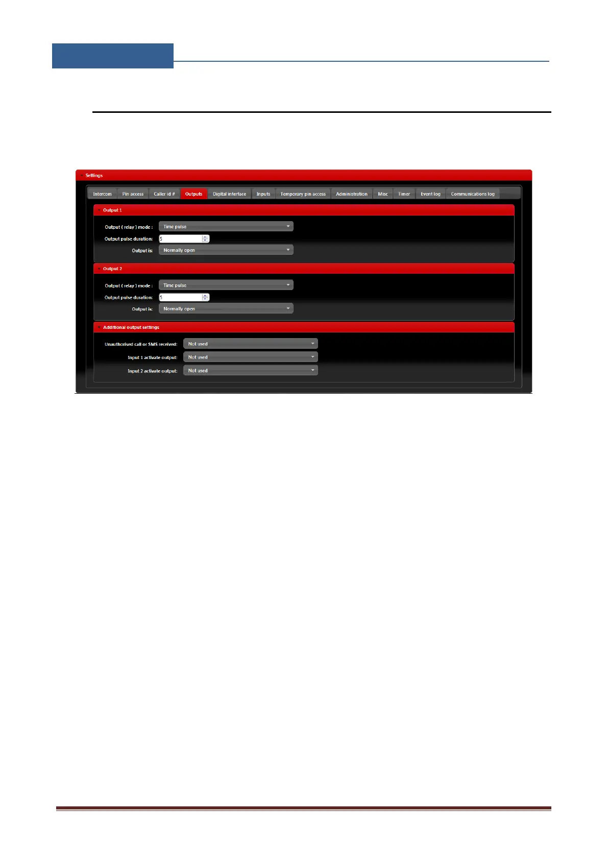Output pulse duration: ON time for output in case of output mode Timer pulse.