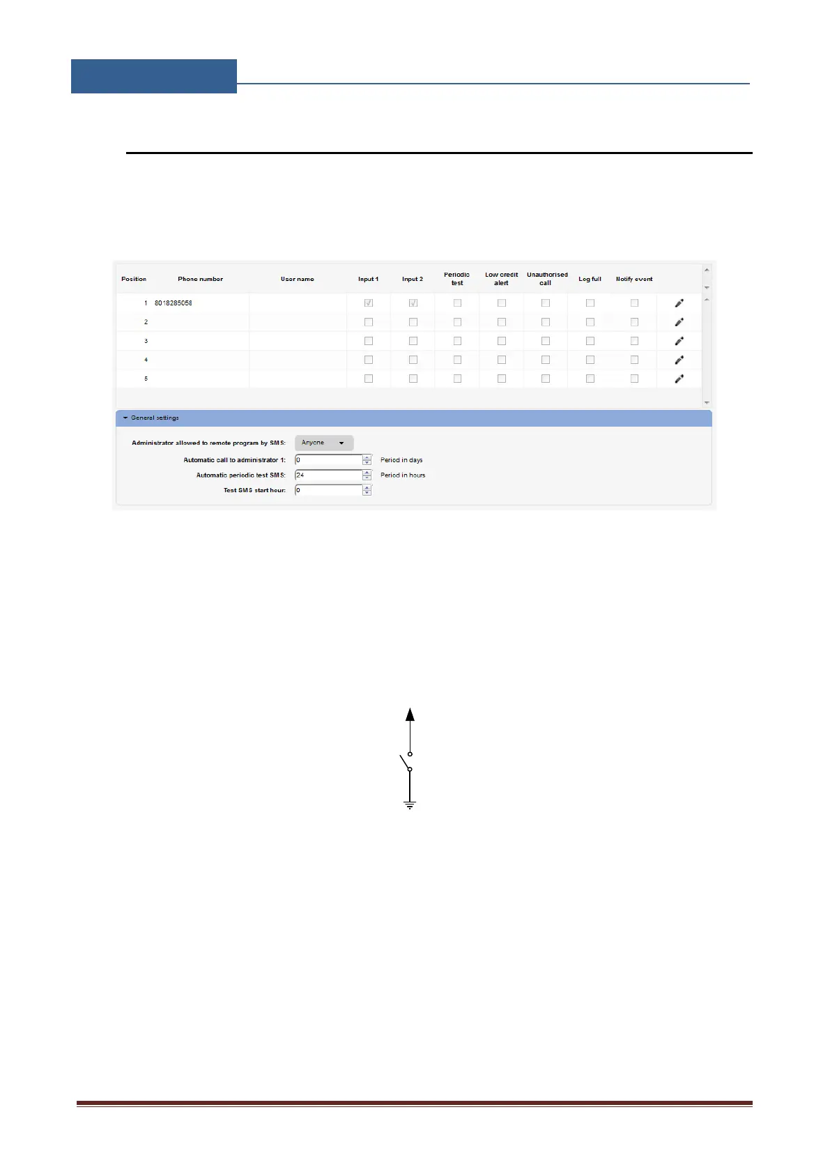 appropriate user. Timer period is defined under parameter Automatic periodic test SMS, it