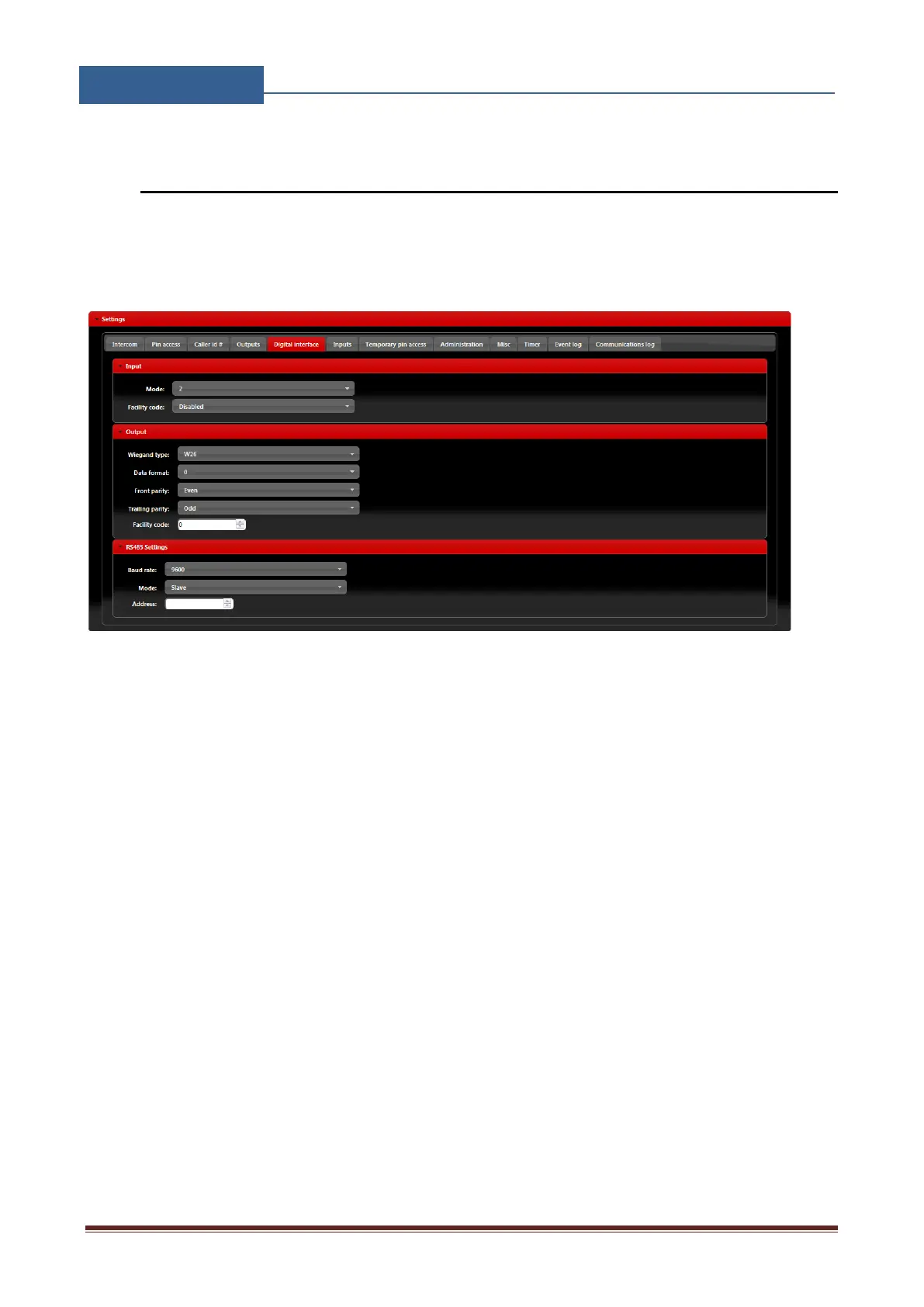 Configuration of the Wiegand output interface: