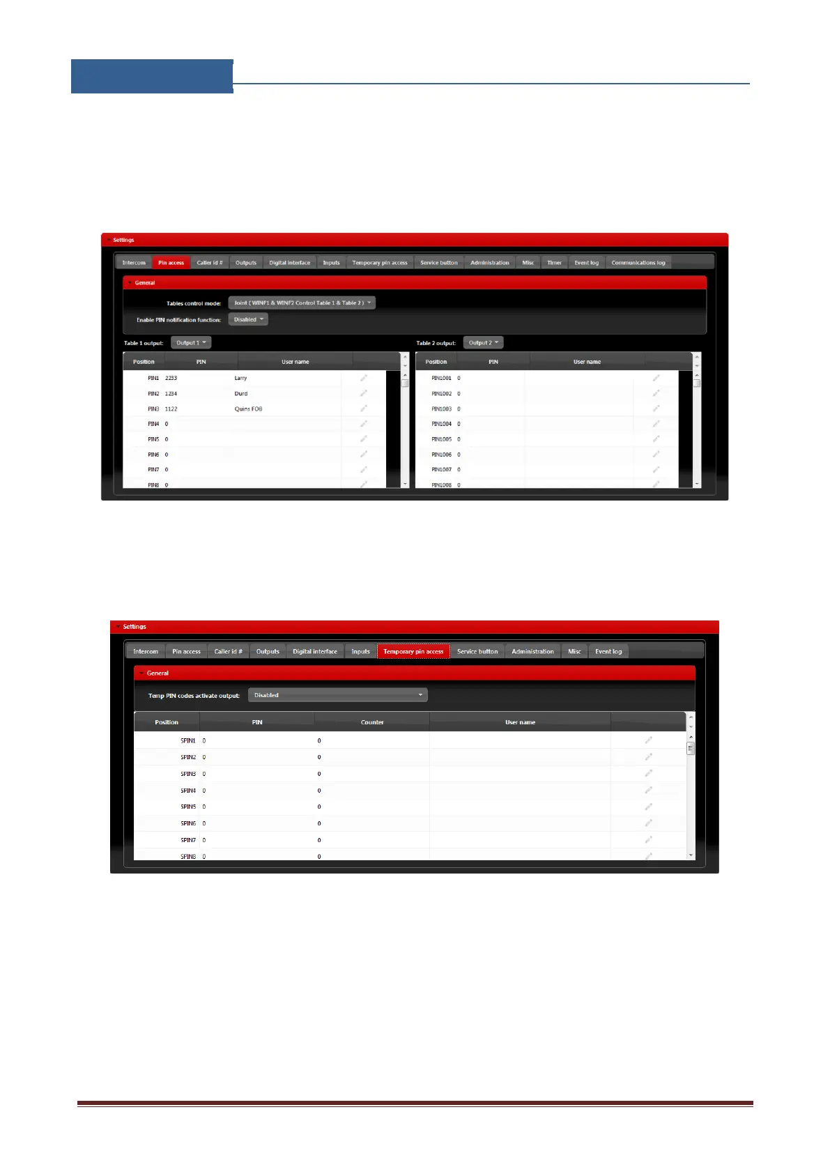 Temporary pin codes are placed in Temporary pin access tab.