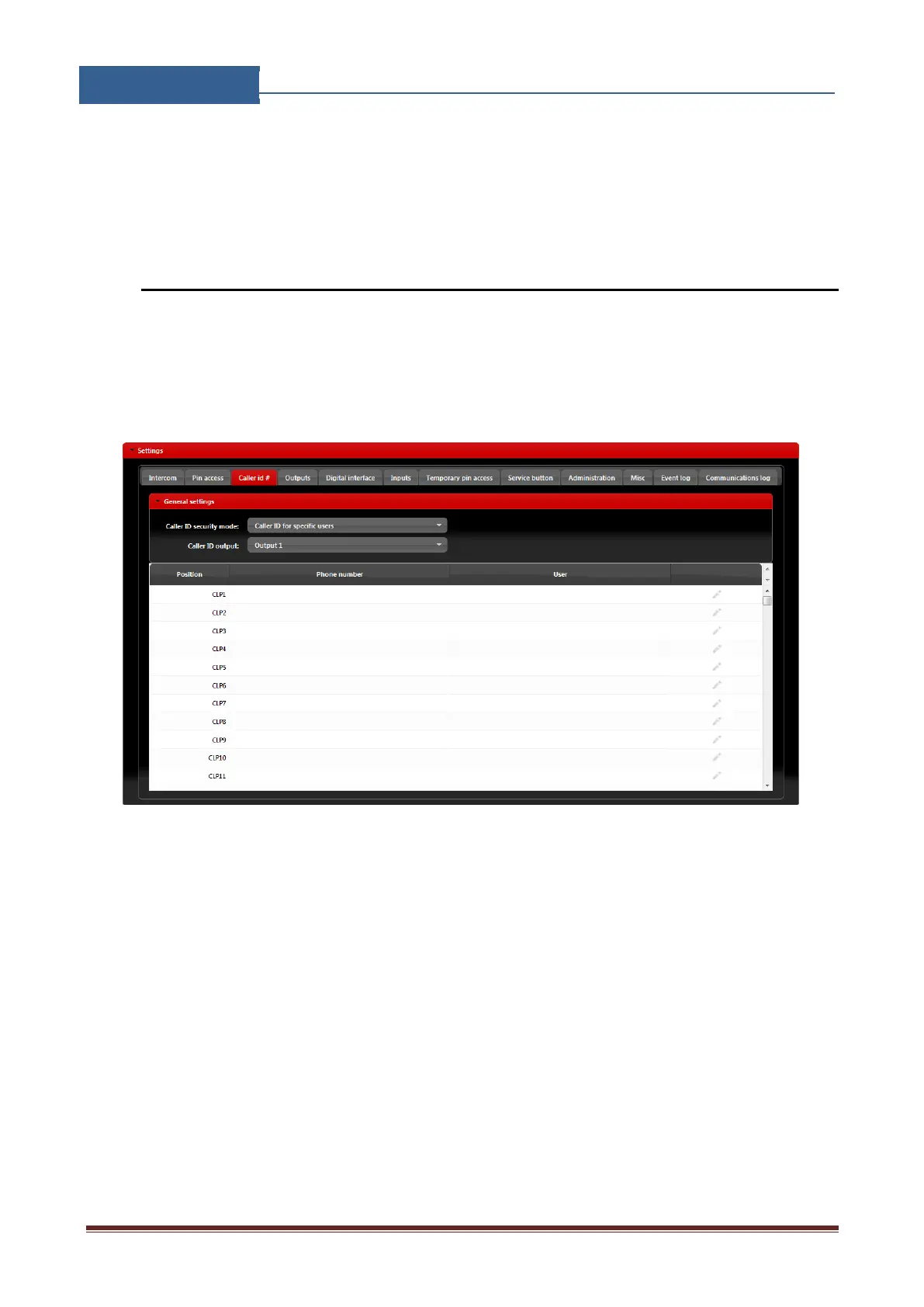 • Caller ID output: Selecting the output that will be triggered in Caller ID function.