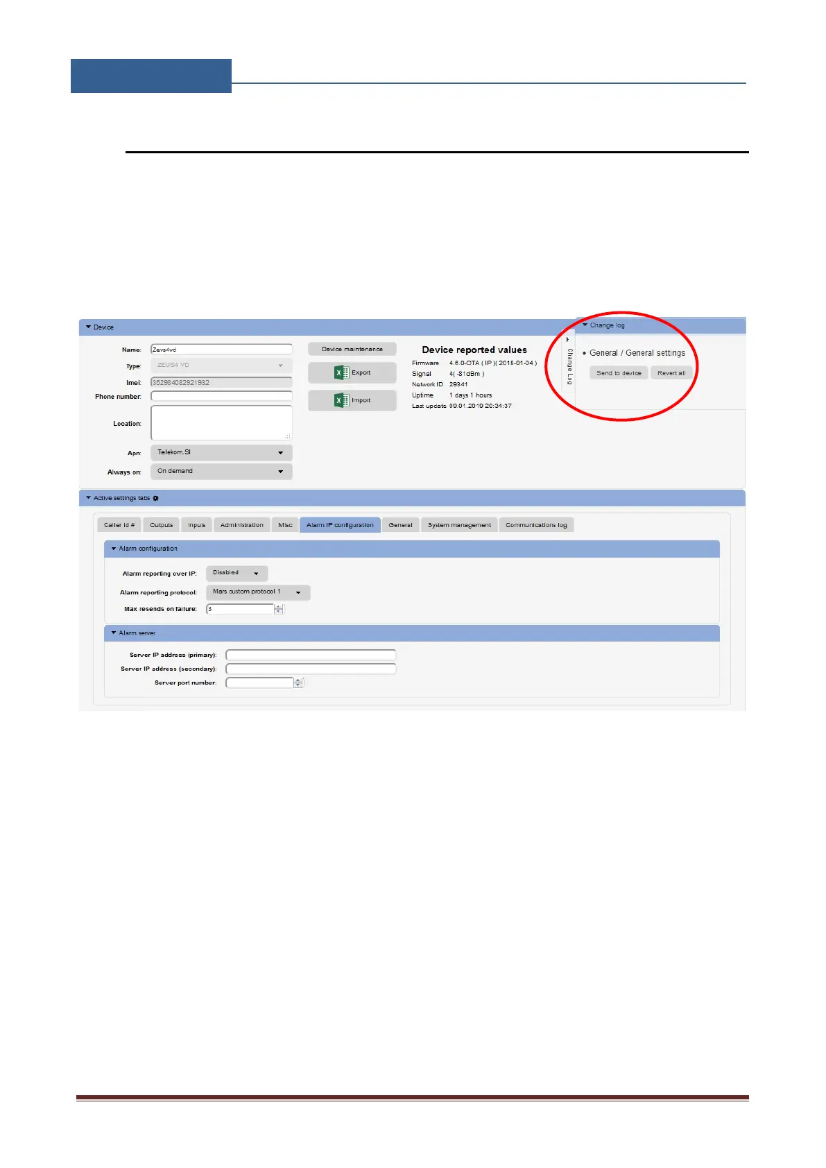 All changes made by the user are listed in the Change Log window. By clicking Send to device