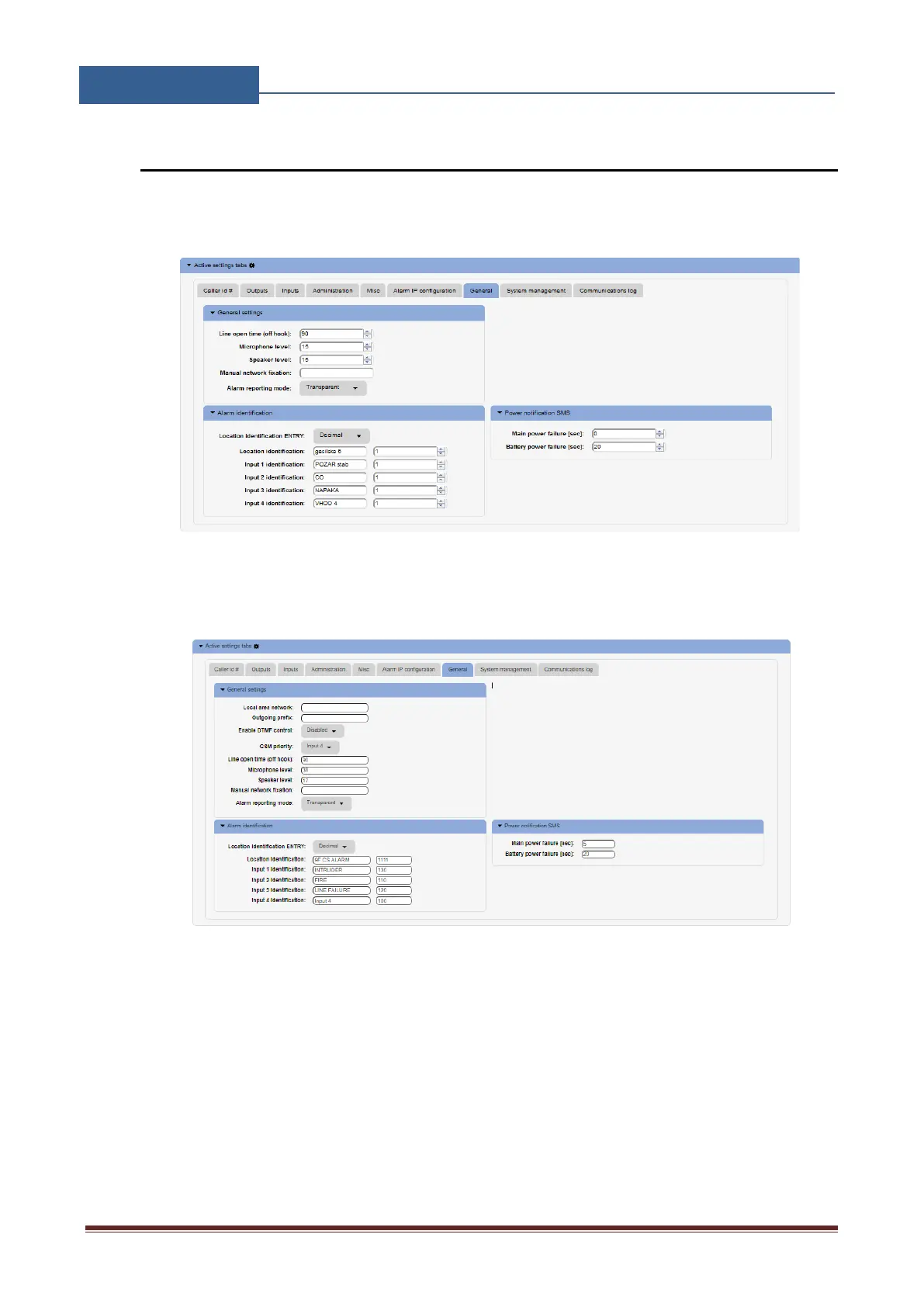 • Line open time (off hook): Max allowed time (in seconds) allowed for voice connection