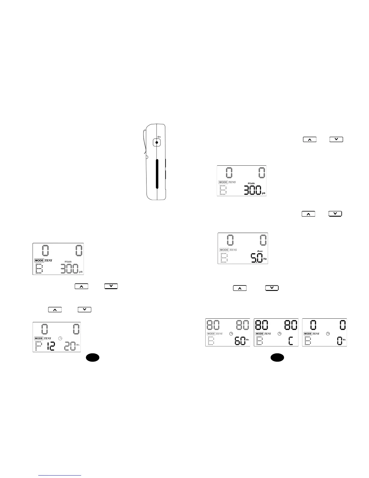 TENS mode is selected, it shows "TENS" on the liquid crystal