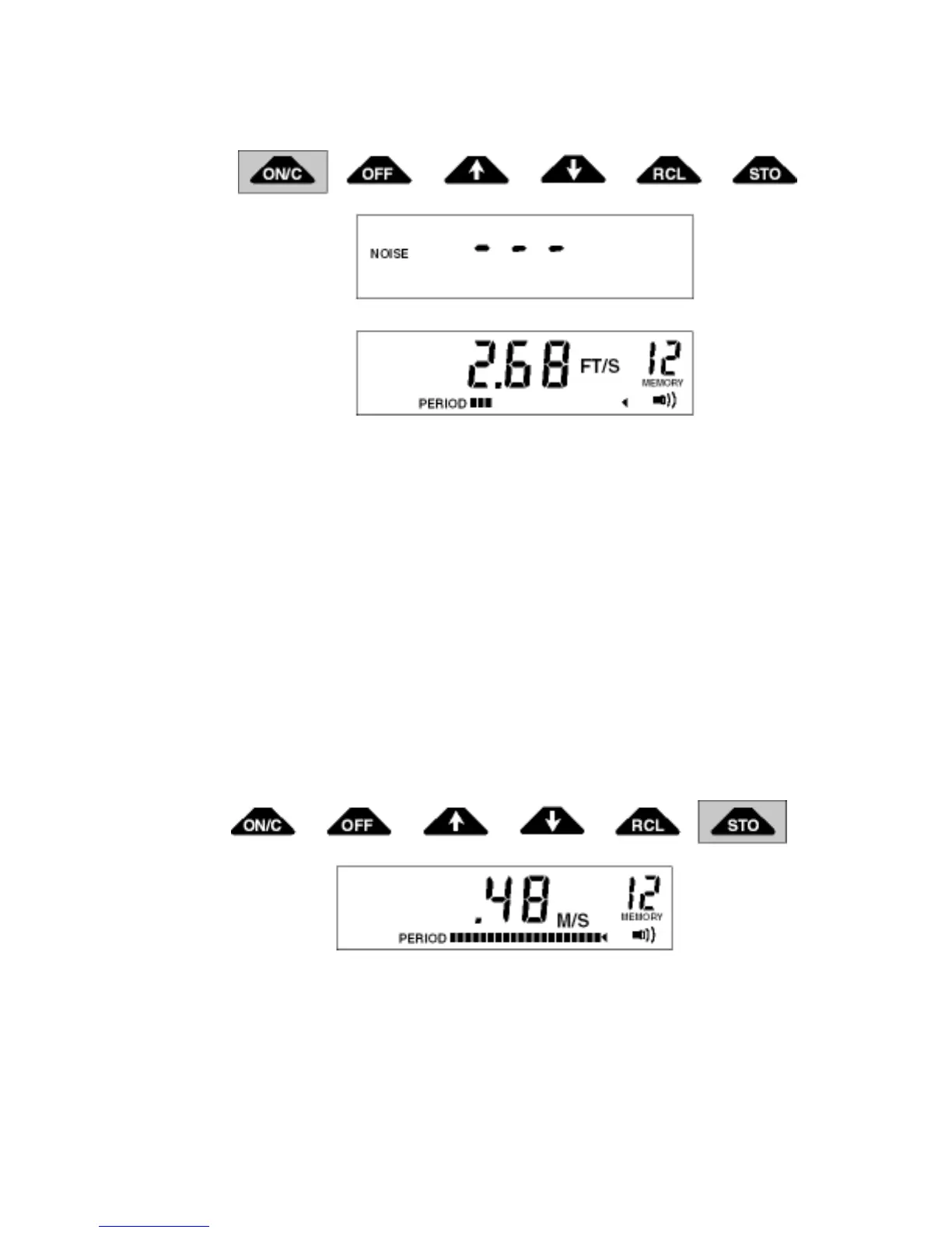 STO key when the desired velocity is displayed. The unit will store the reading and automatically