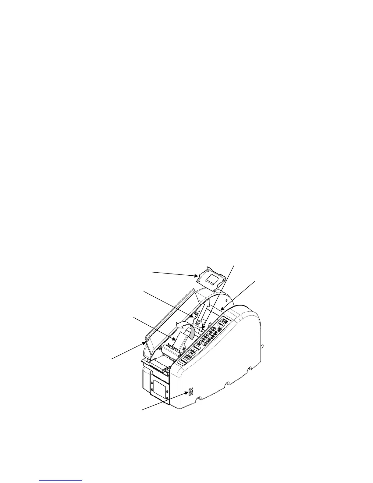 6. Feed the tape, gummed side down, over the top roller, under the tape guide flaps, and