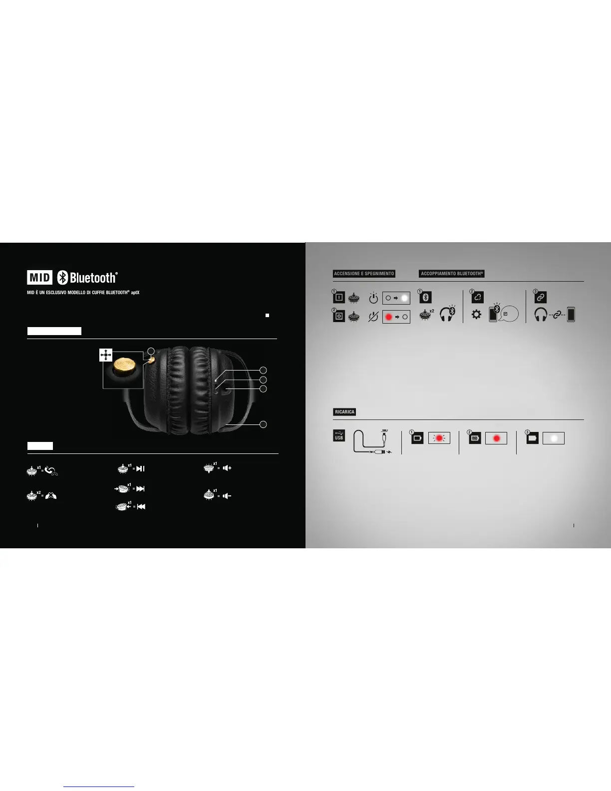 NOTA: CARICARE LA BATTERIA PRIMA DI UTILIZZARE LE CUFFIE PER LA PRIMA VOLTA.