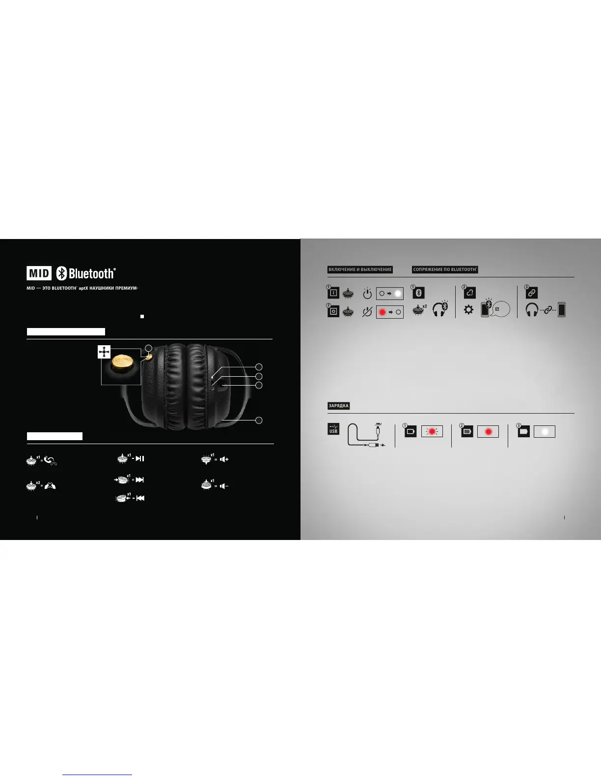 ПРИМЕЧАНИЕ. ПЕРЕД ИСПОЛЬЗОВАНИЕМ НАУШНИКОВ В ПЕРВЫЙ РАЗ ЗАРЯДИТЕ АККУМУЛЯТОР.