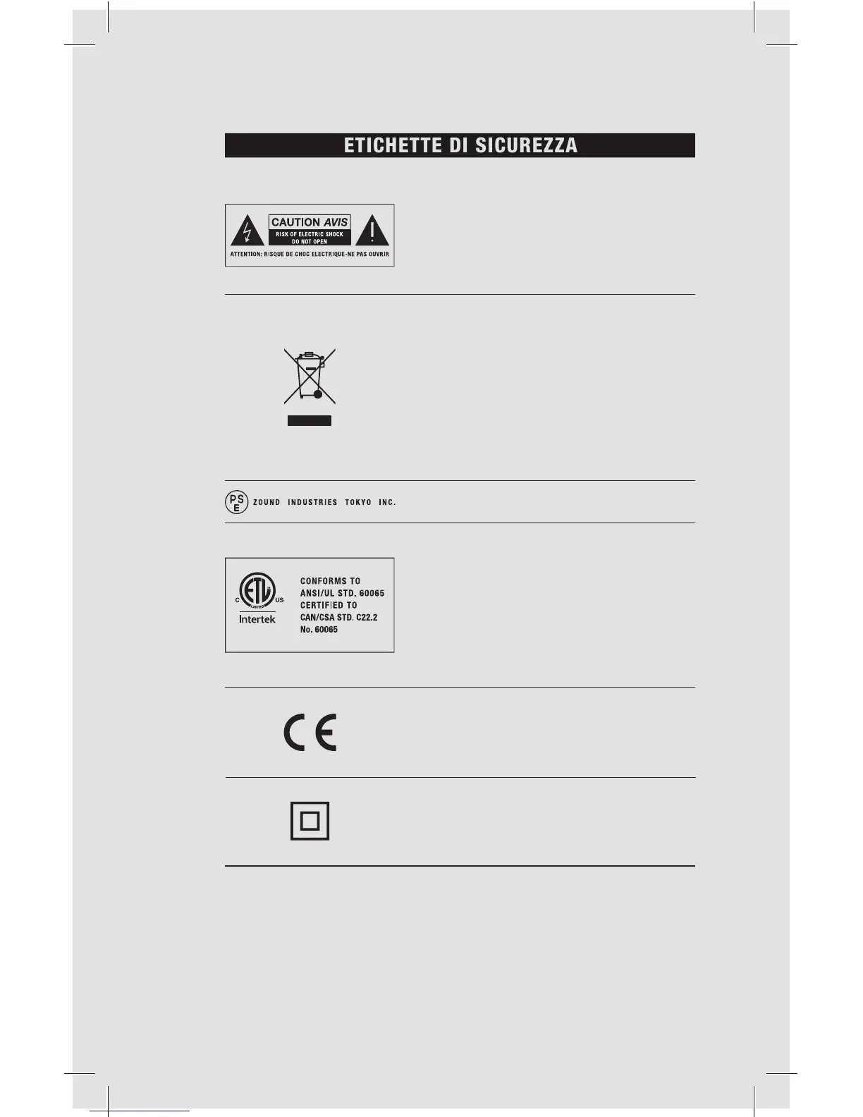 conforme agli standard ANS/UL ST. 60065 e SAN/