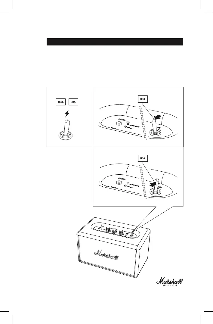 003. 通过切换打开/关闭开关开启有源音箱。标记为蓝牙的源 LED